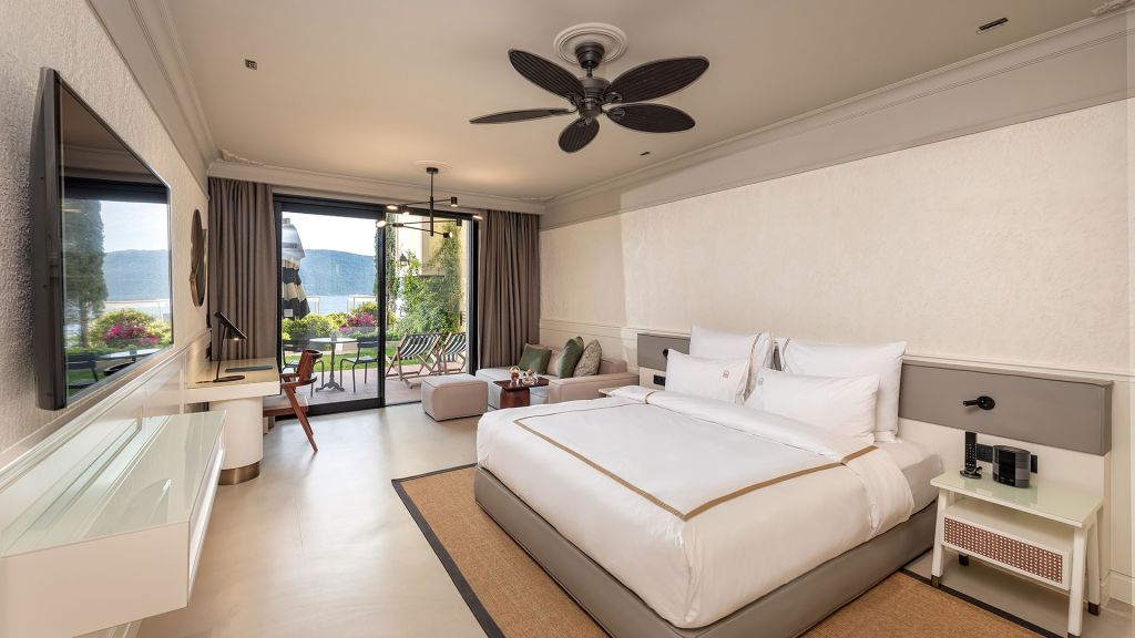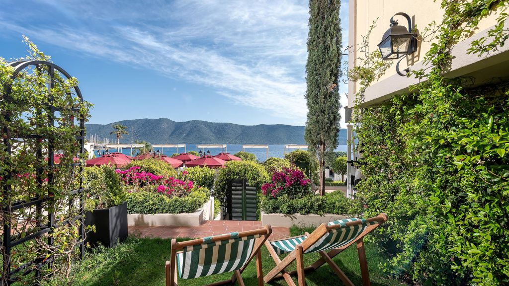 Escape to a world of luxury and relaxation with a room with sea view, private garden and direct access to the pool.