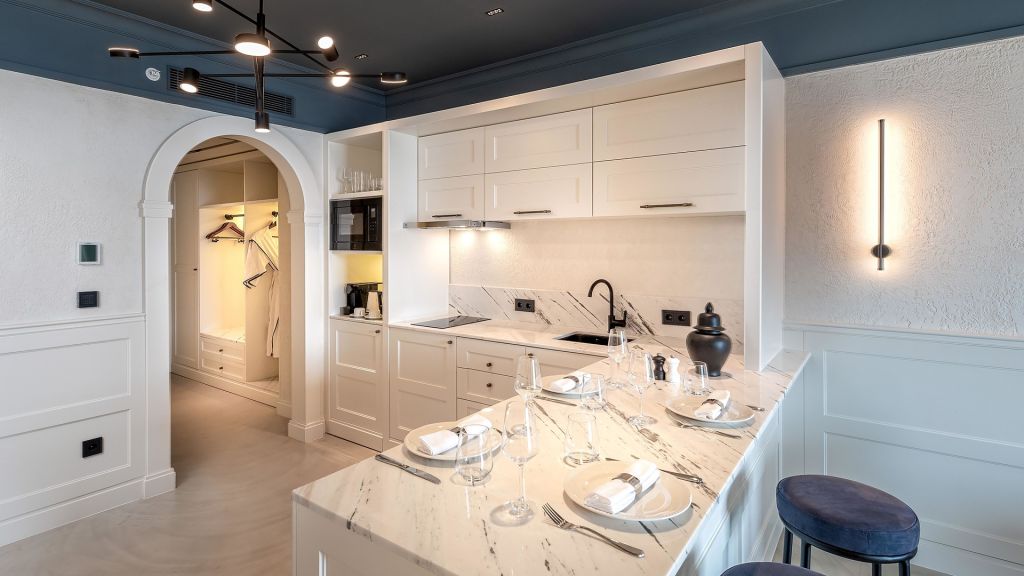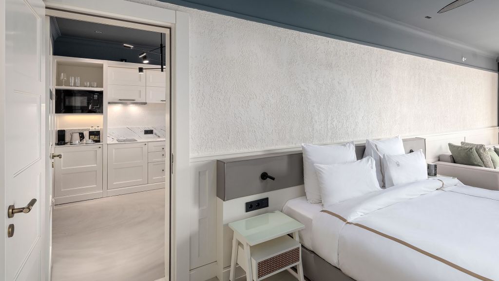 Bodrum Suite is the perfect choice that offers spacious and comfortable accommodations, with a one bedroom, a separate living room, a kitchenette, and a dressing room. Sleeps 3.