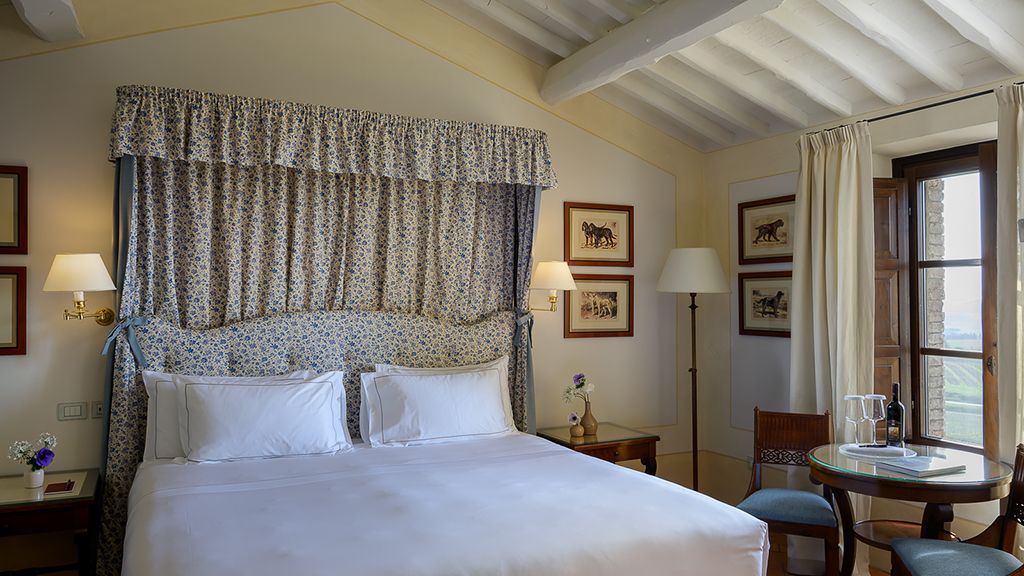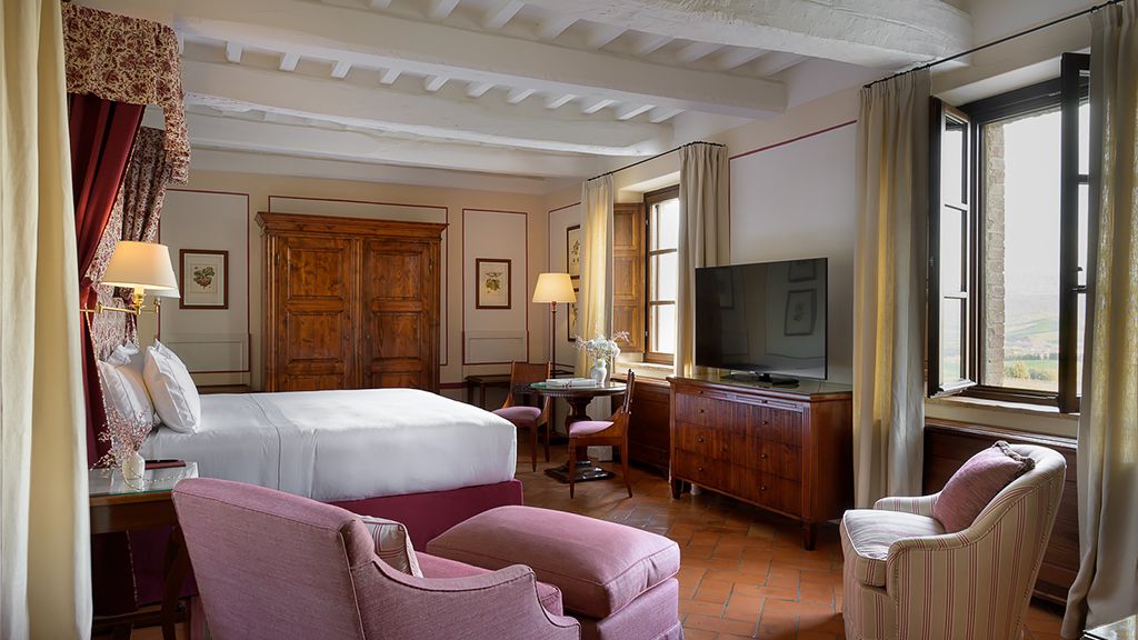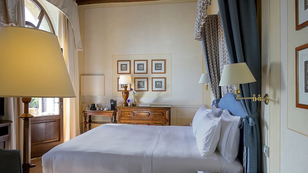 Room size: from 56 to 65sqm / from 609 to 699sqft – 1 king bed (cm 200 x 200 /79” x 79”) – sitting area – vineyard view – en-suite bathroom with rainfall shower – double vanity – makeup mirror – hairdryer – heated towel racks – bathrobes and slippers – desk – tuscan style wardrobe and dresser – complimentary wi-fi – satellite television – telephone – air conditioning – tea-coffee facilities – 1 extra bed possible – charges apply – max occupancy: 3 adults or 2 adults and 1 child up to 12 years
