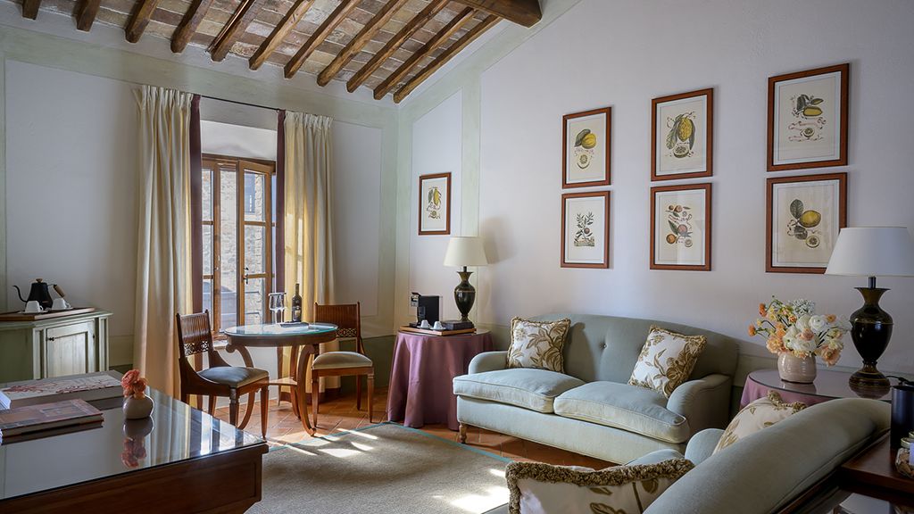 Room size: from 85 to 110sqm /from 914 to 1.184sqft – 1 king bed (cm 200 x 200 /79” x 79”) – separate sitting area – vineyard view – 2 en-suite bathrooms with rainfall shower – double vanity – makeup mirror – hairdryer – heated towel racks – bathrobes and slippers – desk – tuscan style wardrobe and dresser – complimentary wi-fi – satellite television – telephone – air conditioning – tea-coffee facilities – 1 sofa bed for 1 adult or 2 children up to 12 years possible – charges apply – max occupancy: 3 adults and 1 child or 2 adults and 2 children