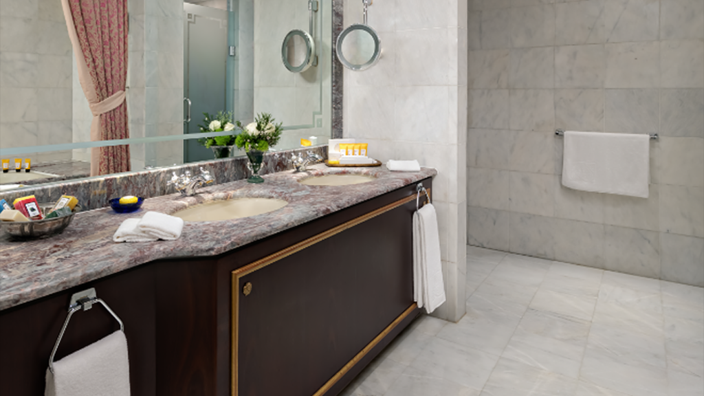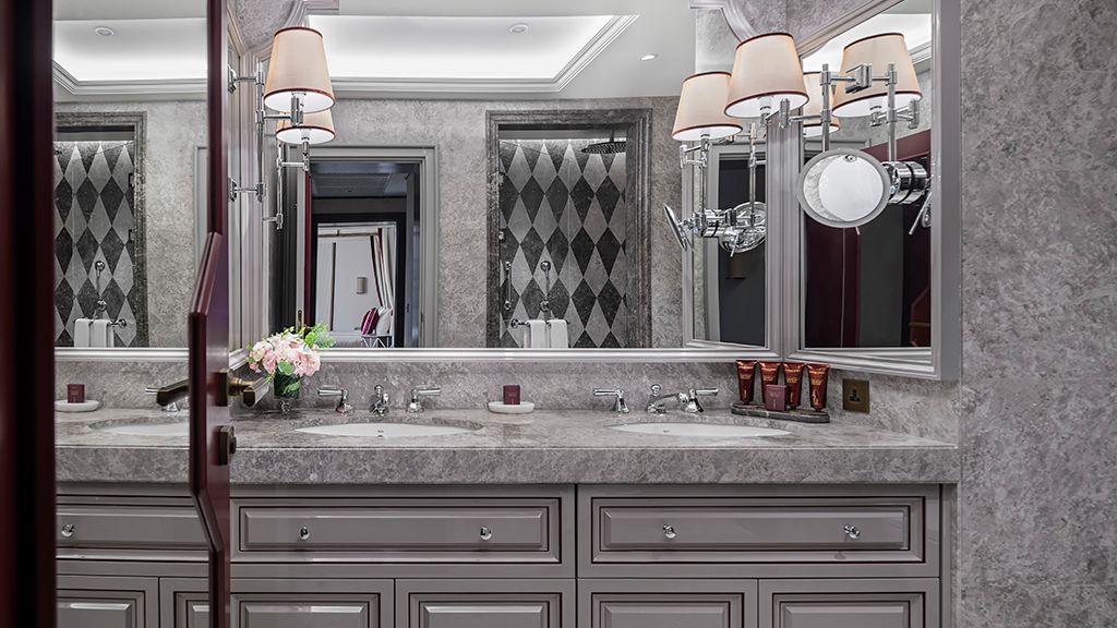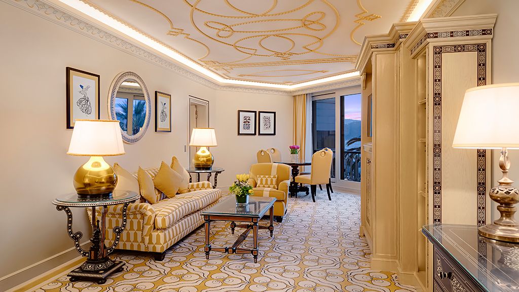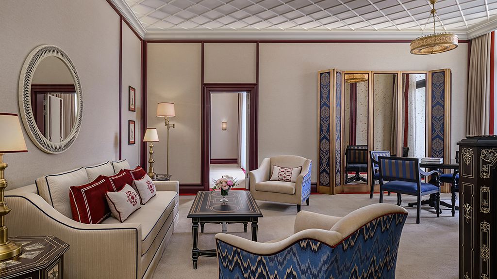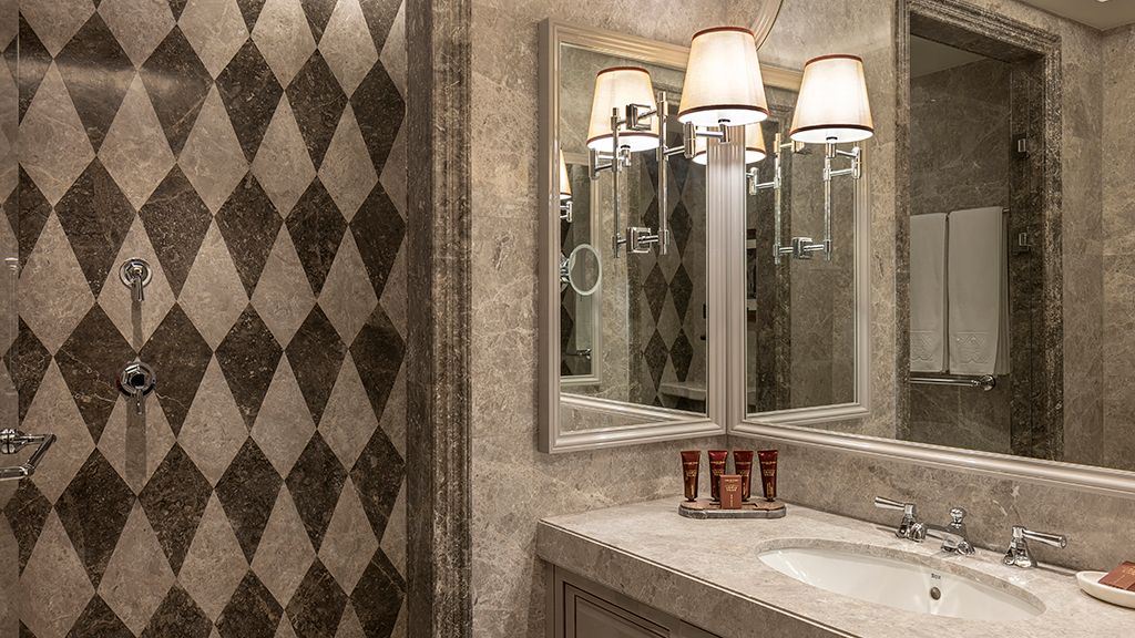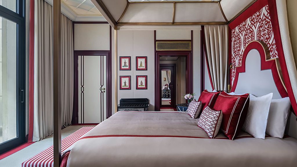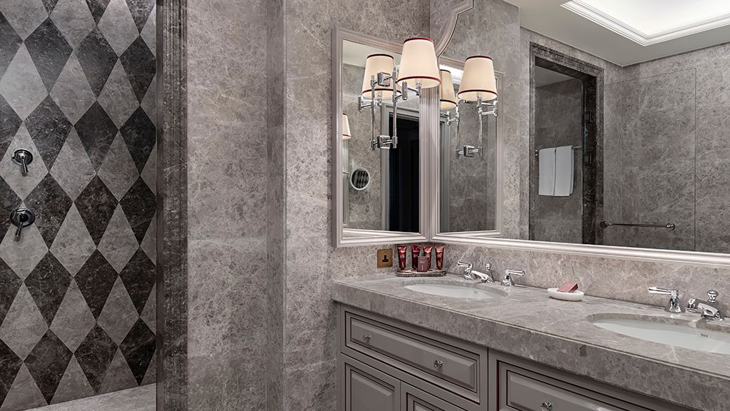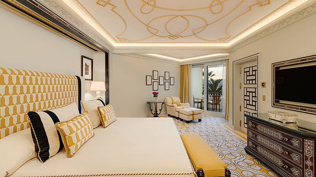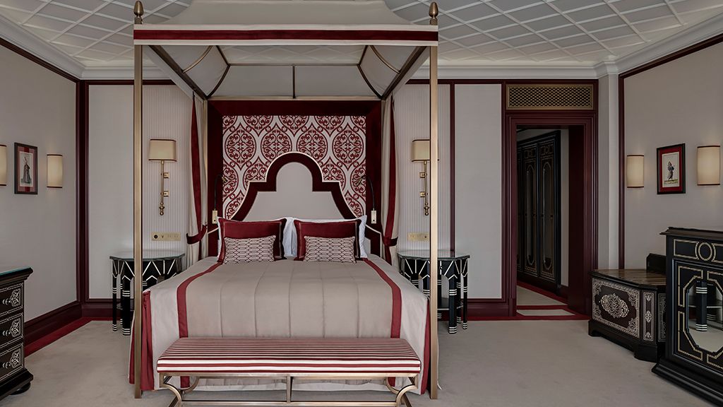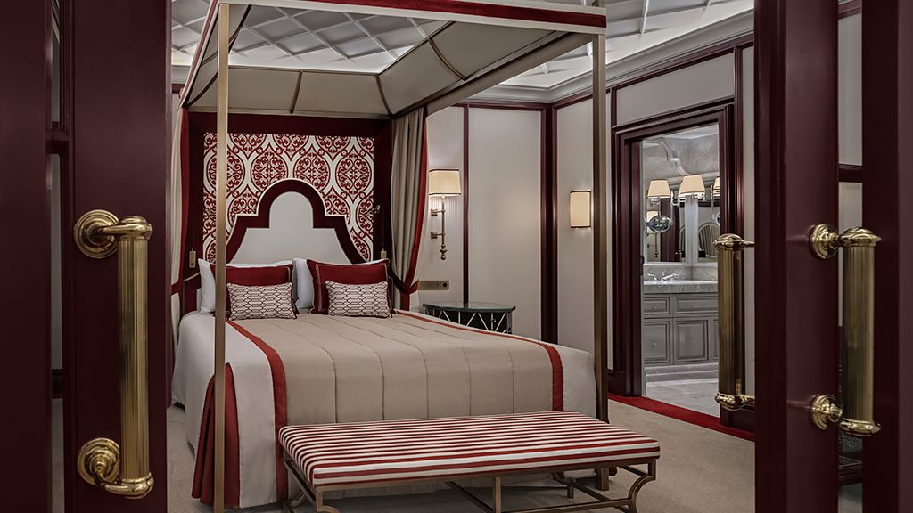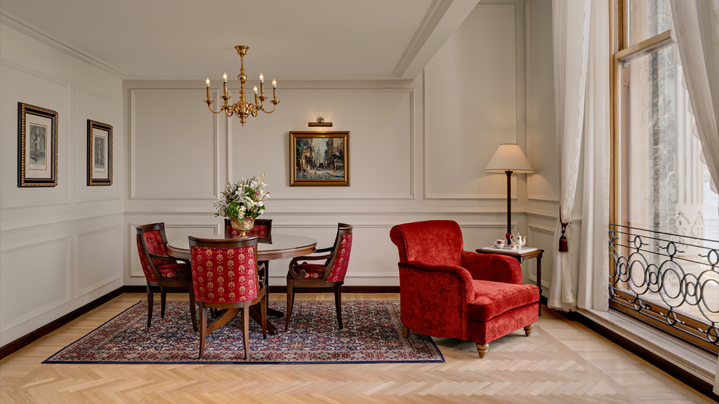 Bosphorus view - 1 King Bed. Totally redesigned with royal Ottoman architectural craftsmanship, these generously sized brand-new suites offer palatial elegance with an incredible Bosphorus vista. The suites have a specially crafted king-sized bed, a large balcony and a Turkish hammam-style marble bathroom. An elegant extended living room with lavish furniture creates a perfect combination of luxury and a stay of splendour.
