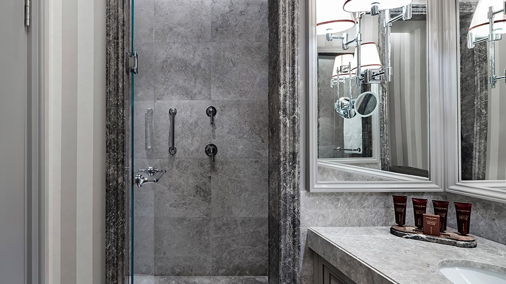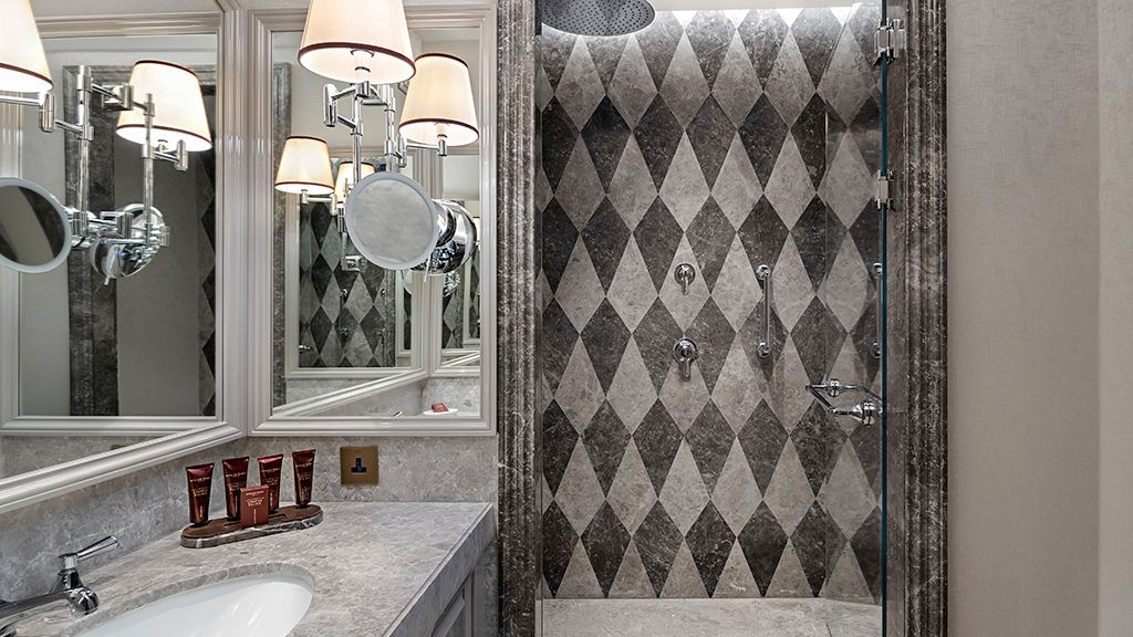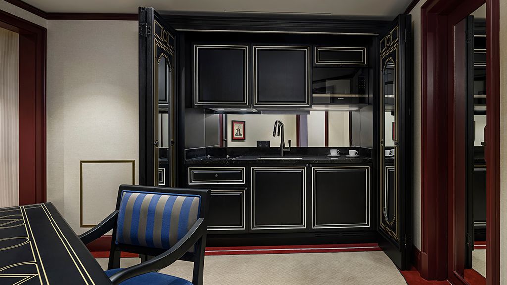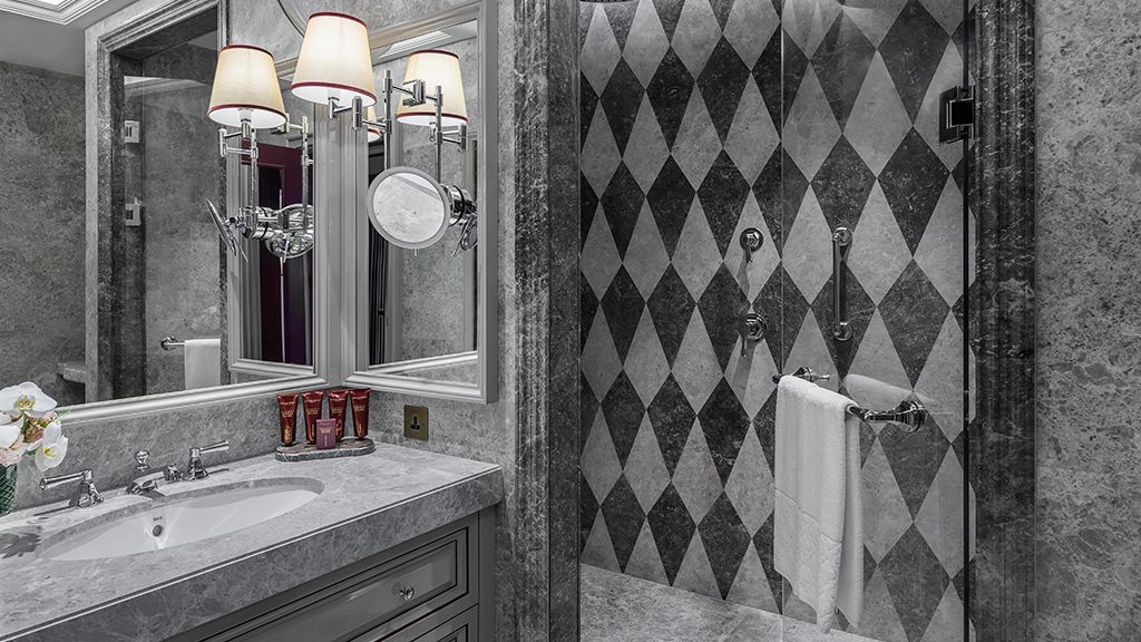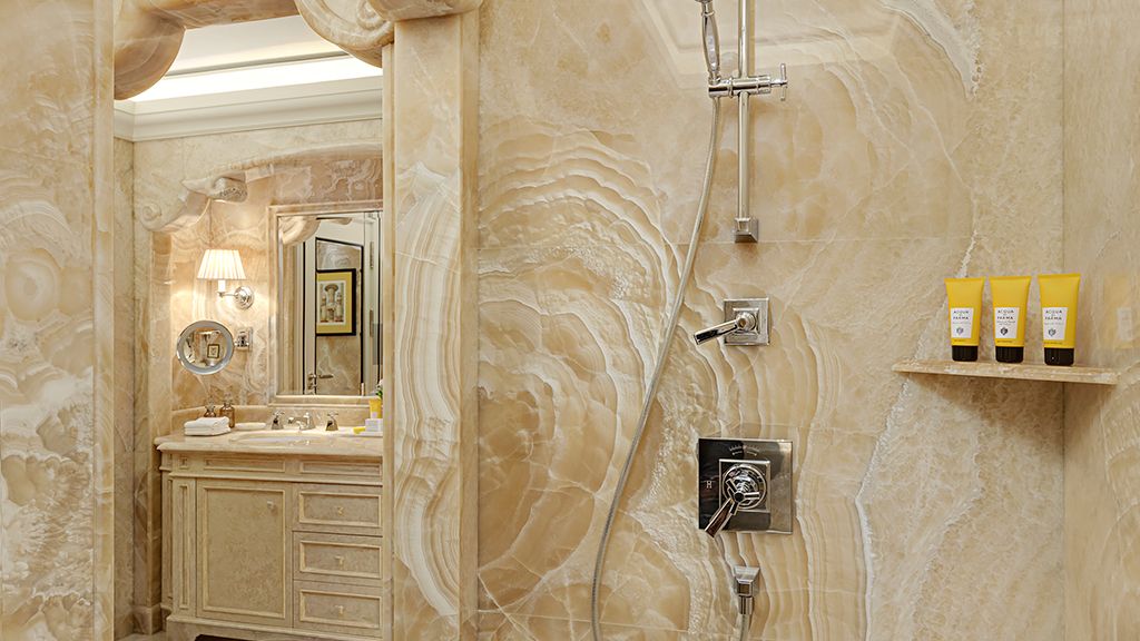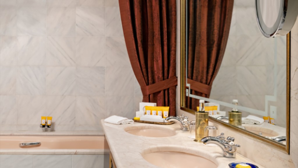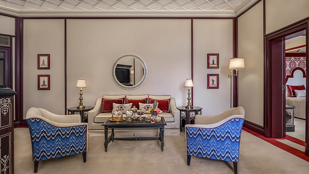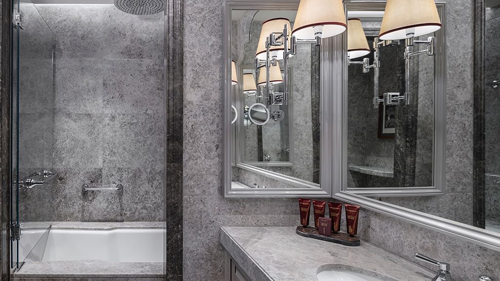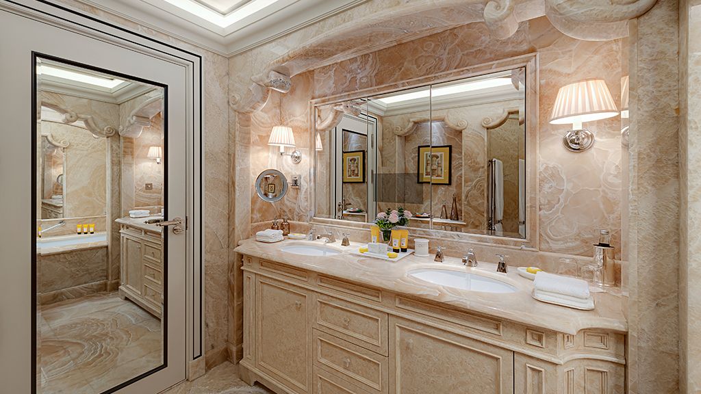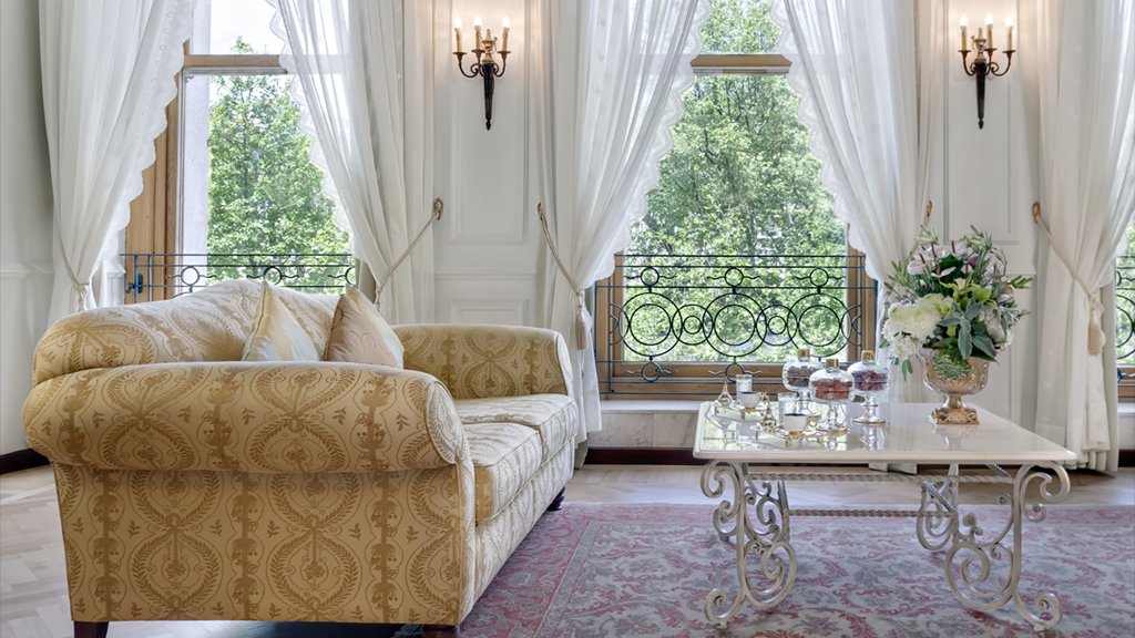 Bosphorus view - 1 King Bed. Totally redesigned with royal Ottoman architectural craftsmanship, these generously sized brand-new suites offer palatial elegance with an incredible Bosphorus vista. The suites have a specially crafted king-sized bed, a large balcony and a Turkish hammam-style marble bathroom. An elegant extended living room with lavish furniture creates a perfect combination of luxury and a stay of splendour.