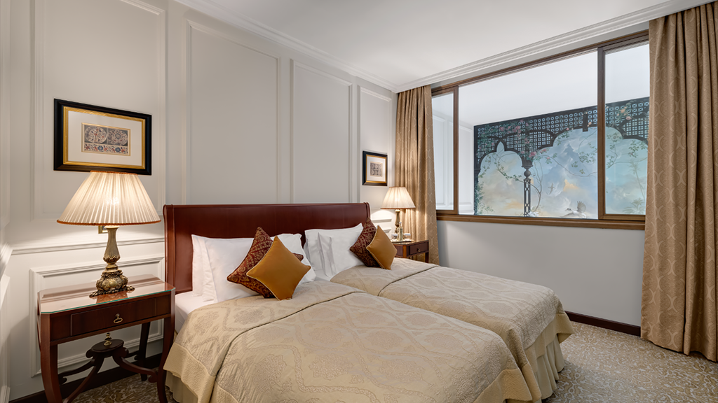 Garden view - 2 Twin Beds. Overlooking Yıldız Park and reflecting the royal Ottoman heritage with strikingly localized architectural inspirations, these newly redesigned rooms express the grace of luxury. A comfy twin beds with tulip-patterned fabrics, Turkish hammam-formed marble bathrooms and comfortable seating areas perfectly combine to offer you a luxurious stay. Balconies overlooking the park and the street create a spacious ambience to unwind.