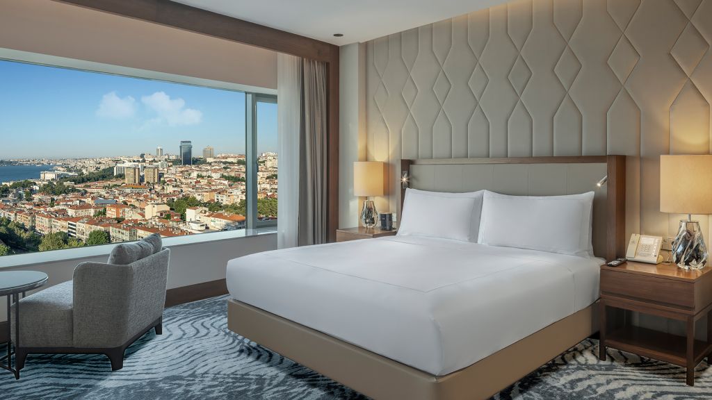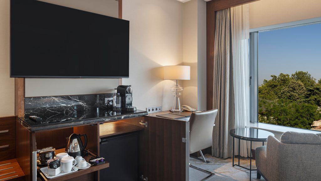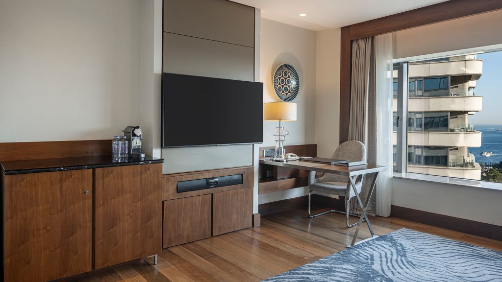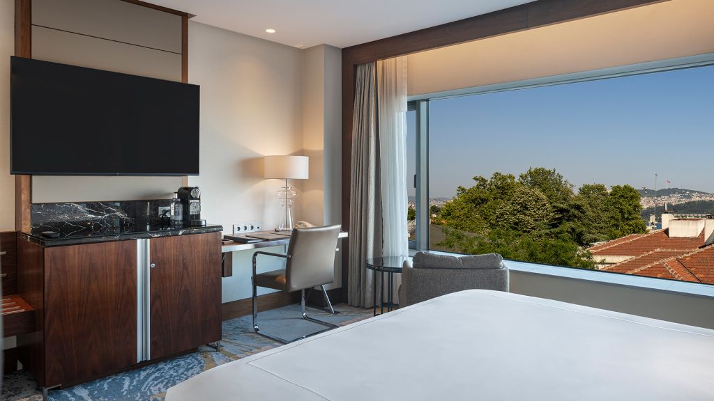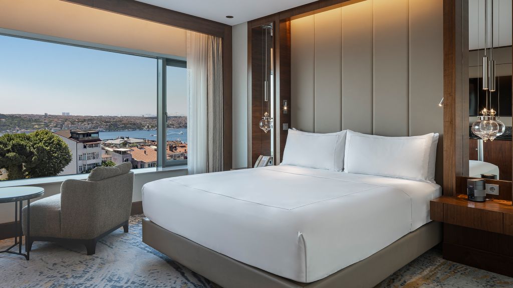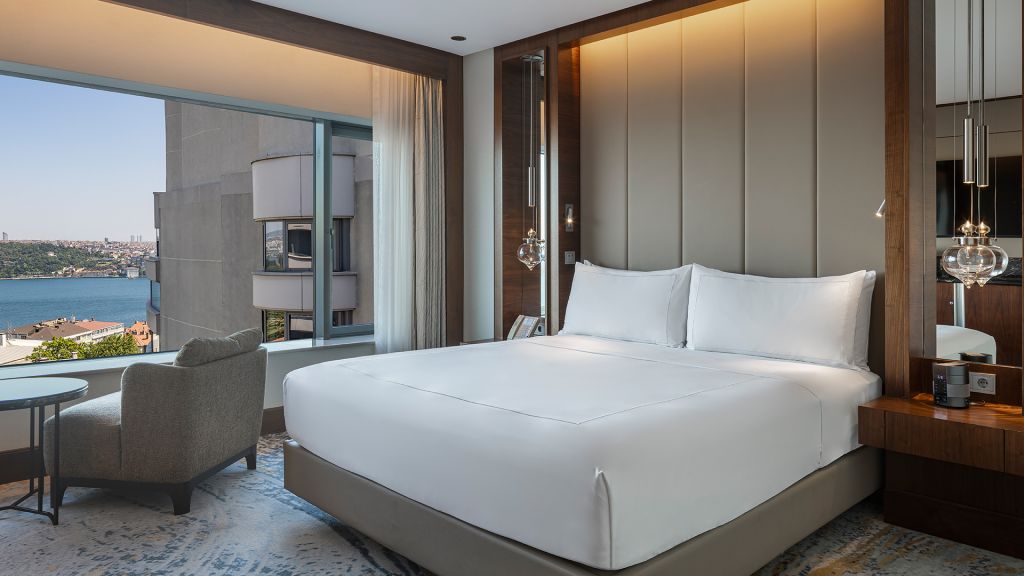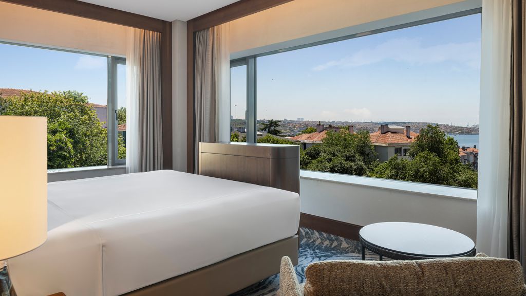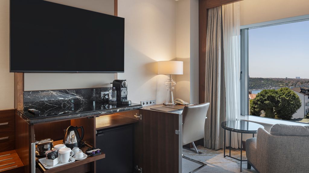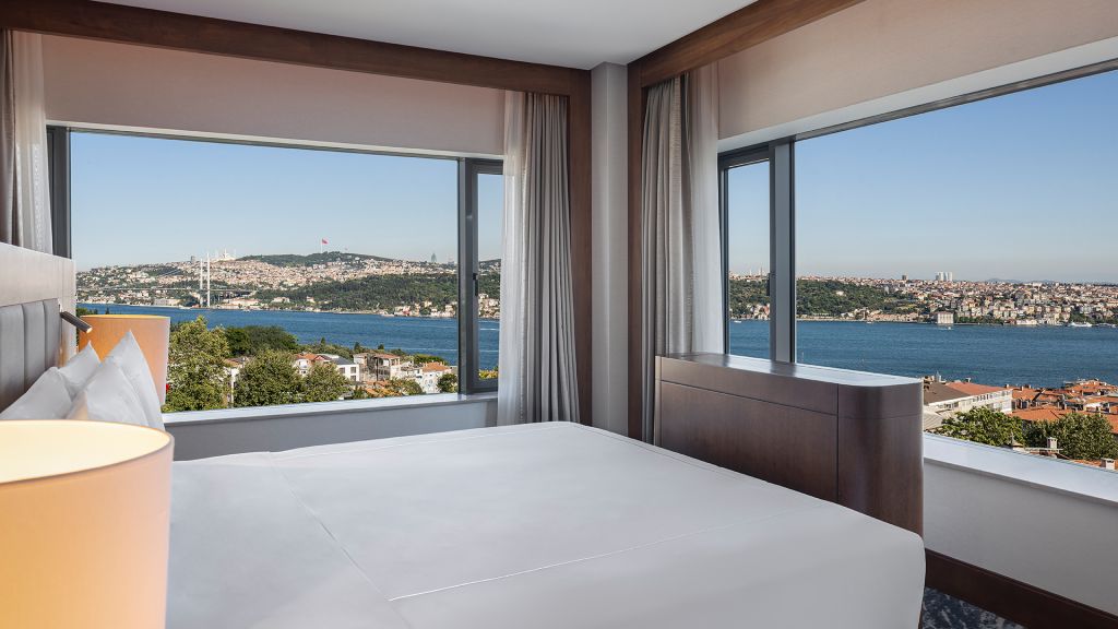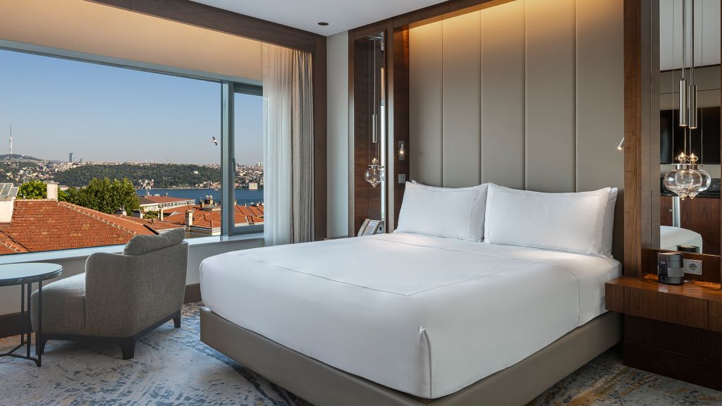 Room with king bed, Nespresso machine, Wi-Fi, walk in shower and Bosphorus view.