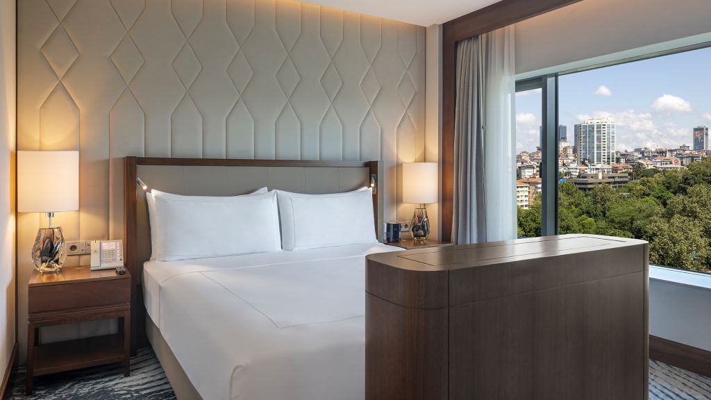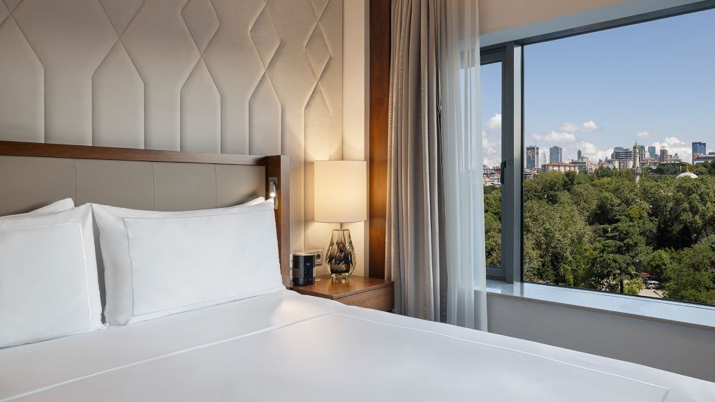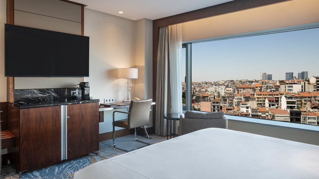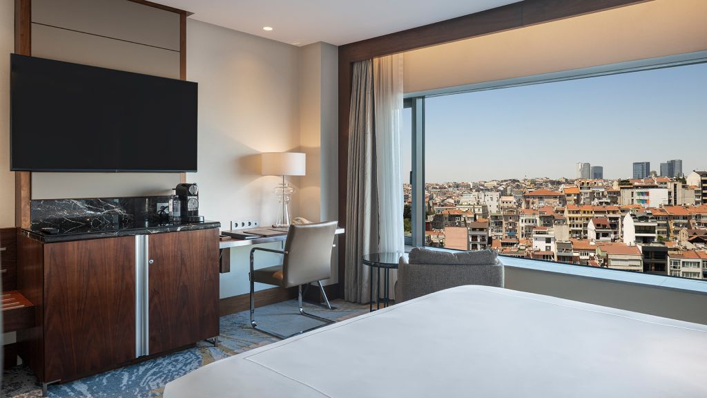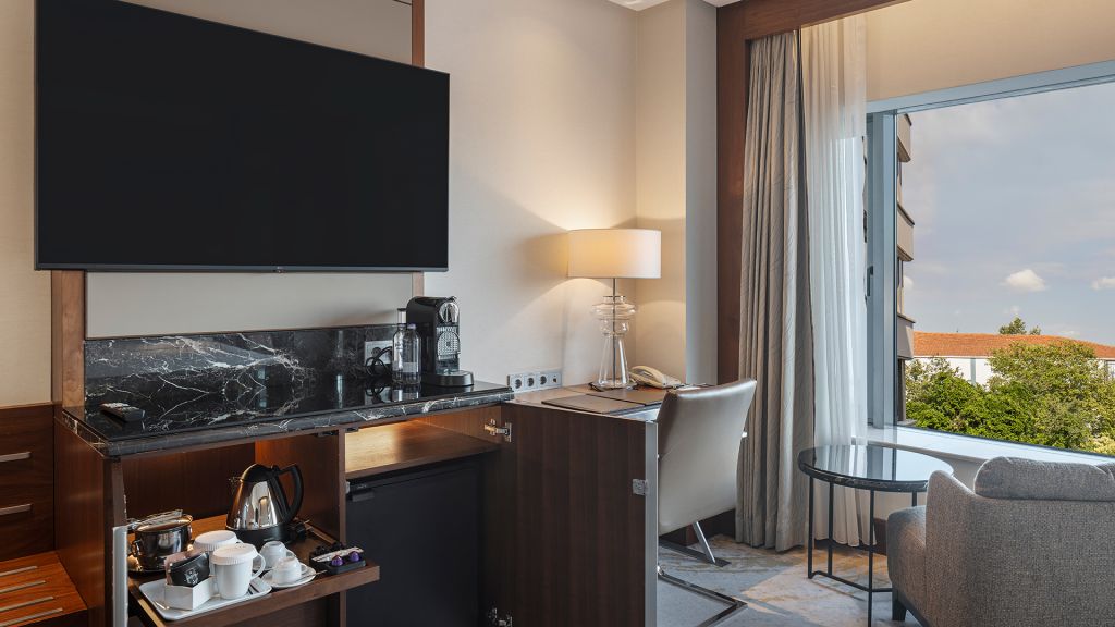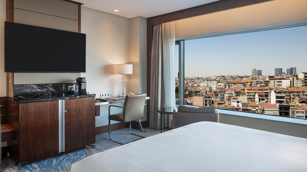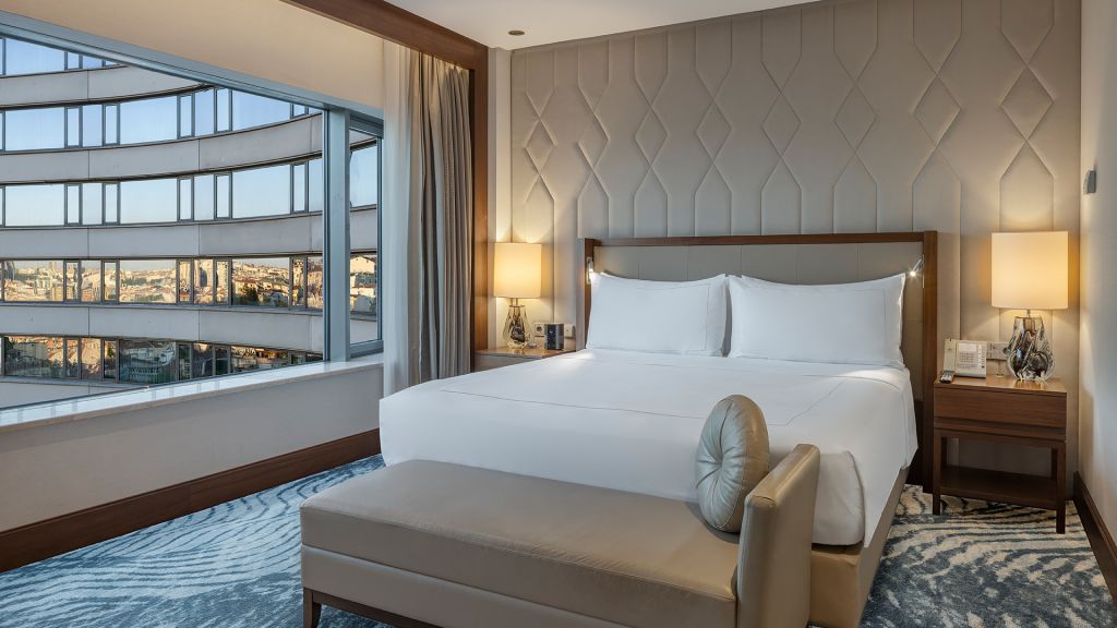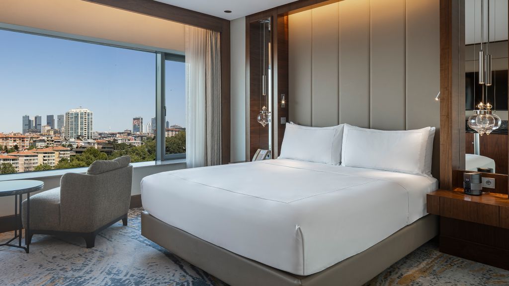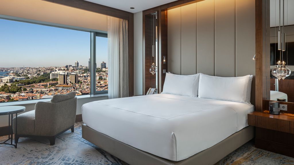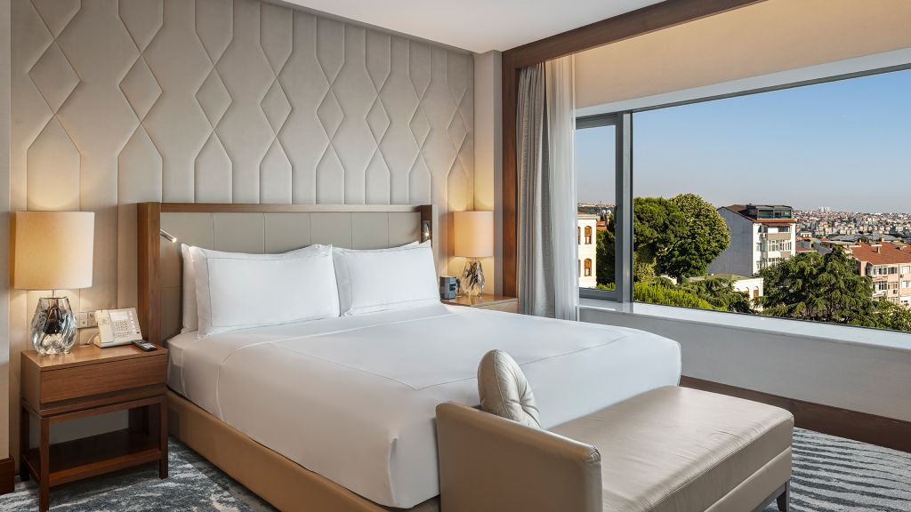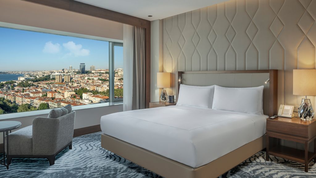 Room with king bed, Nespresso machine, Wi-Fi, walk in shower and Bosphorus view.