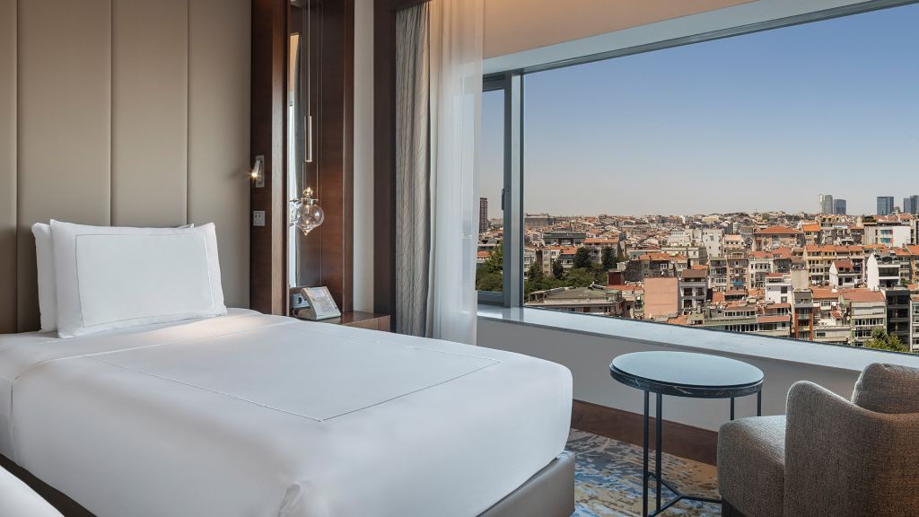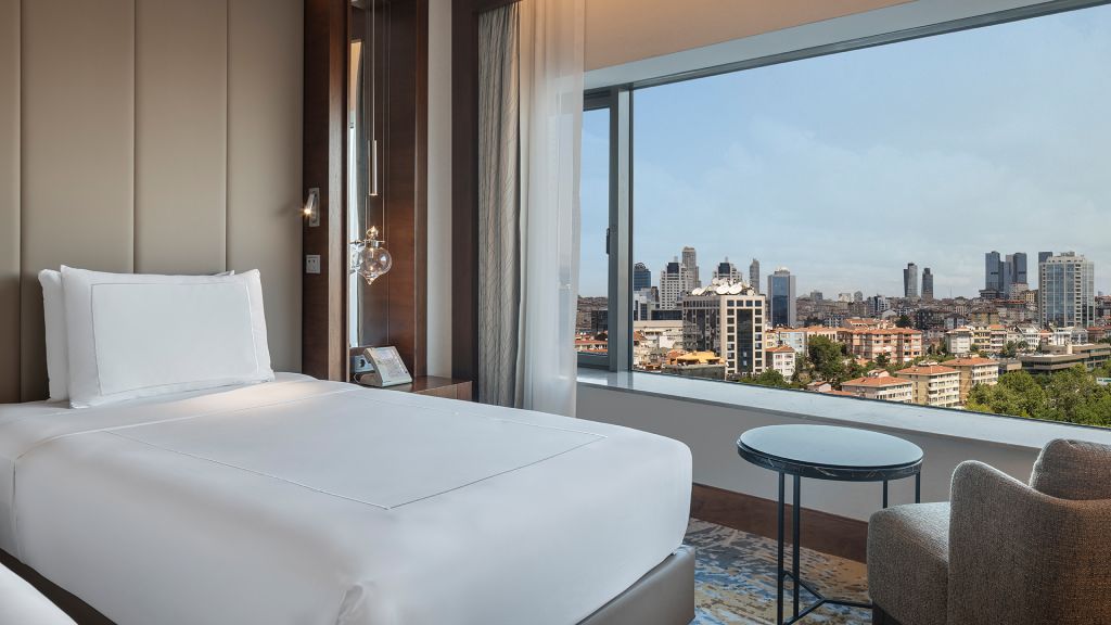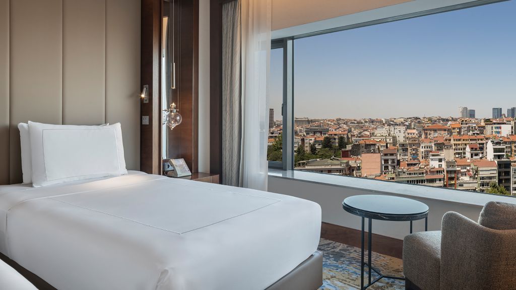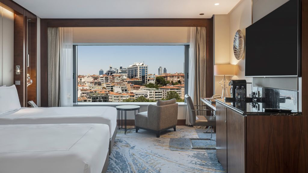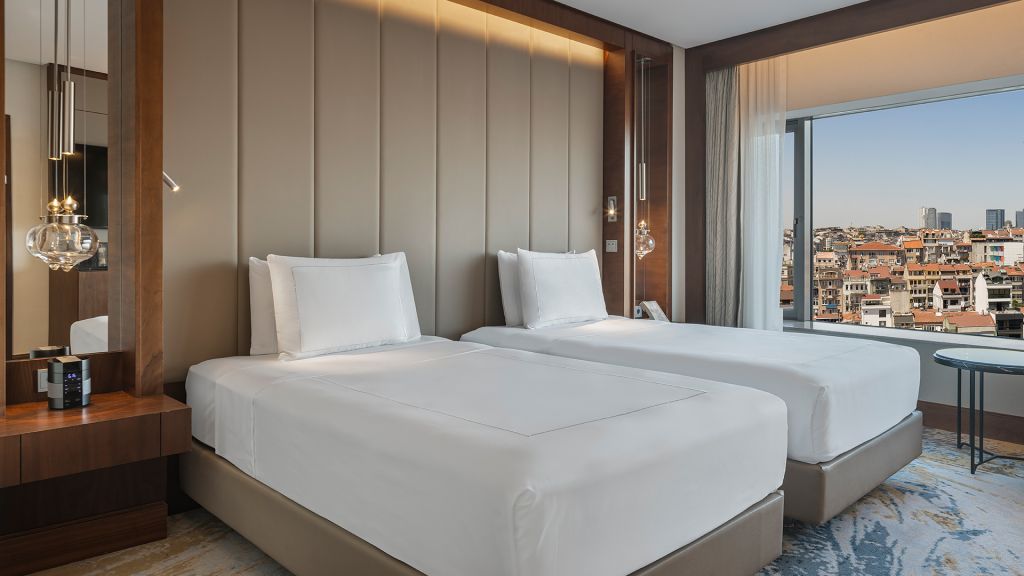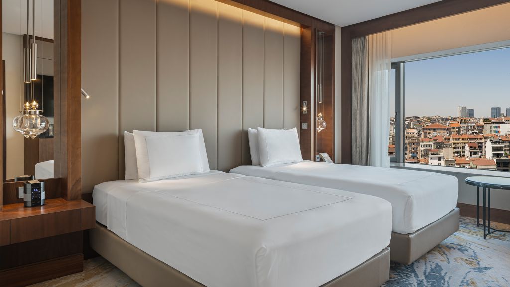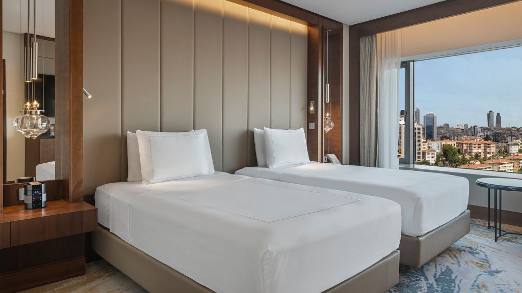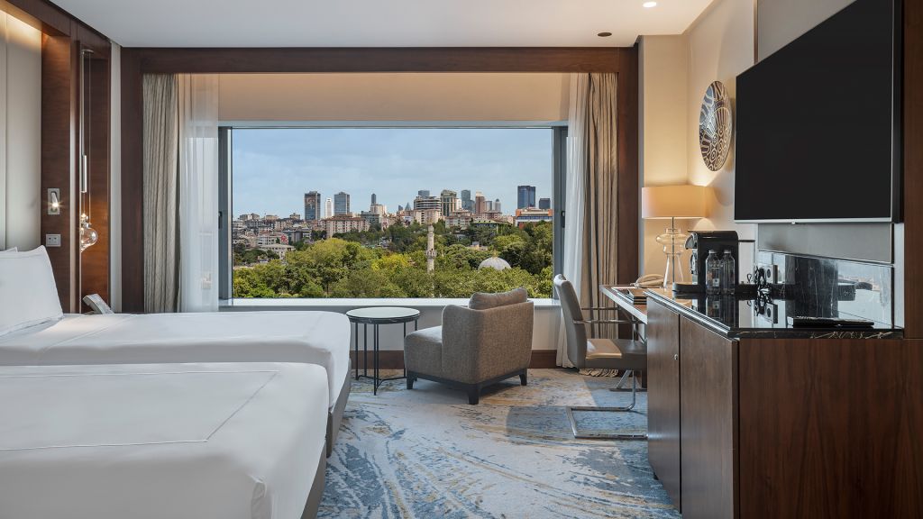 Room with twin beds, Nespresso machine, Wi-Fi, walk-in rain shower and Bosphorus view.