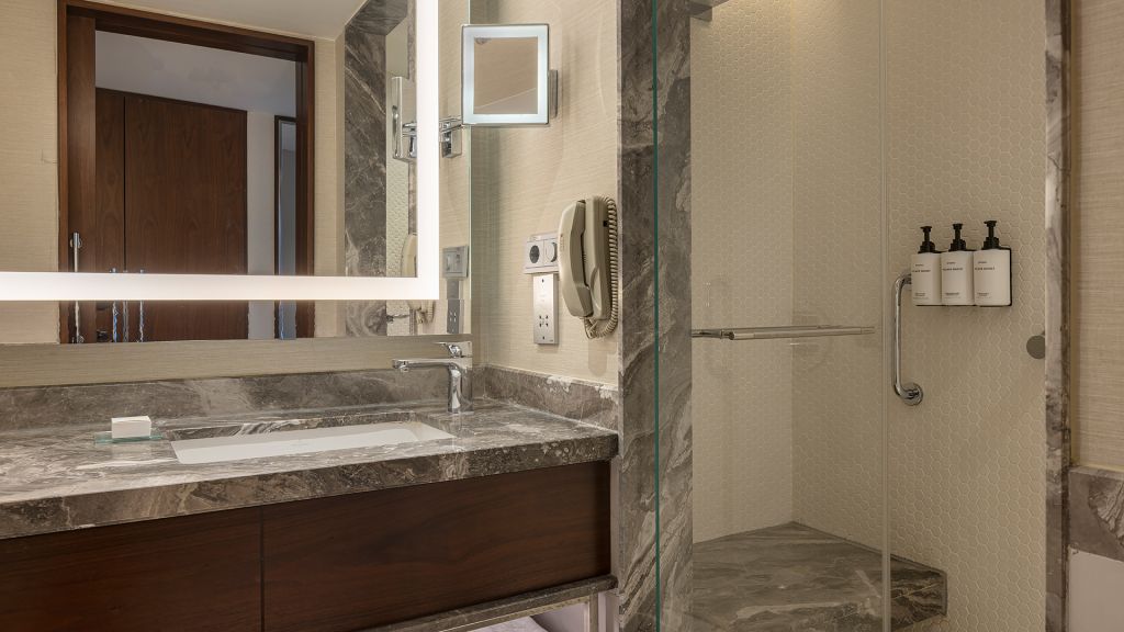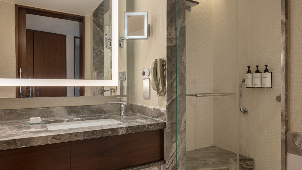 Room with king bed, walk-in shower and executive lounge access which includes breakfast.