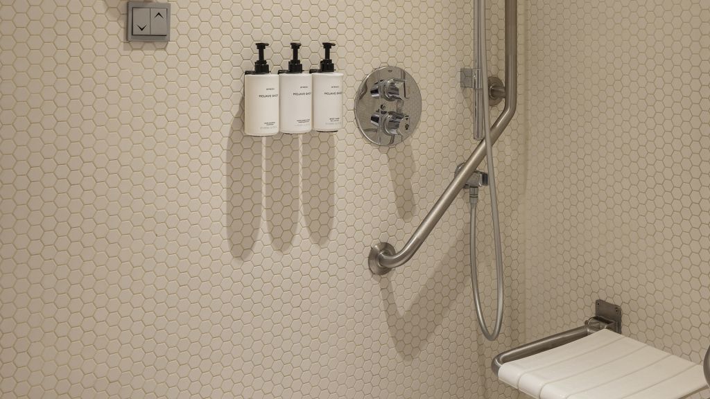 Features a King bed, sliding door in bathroom, wheelchair accessibility, WiFi internet, flat-screen TV, in-room safe.