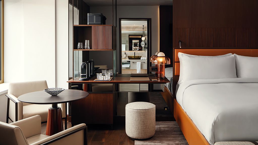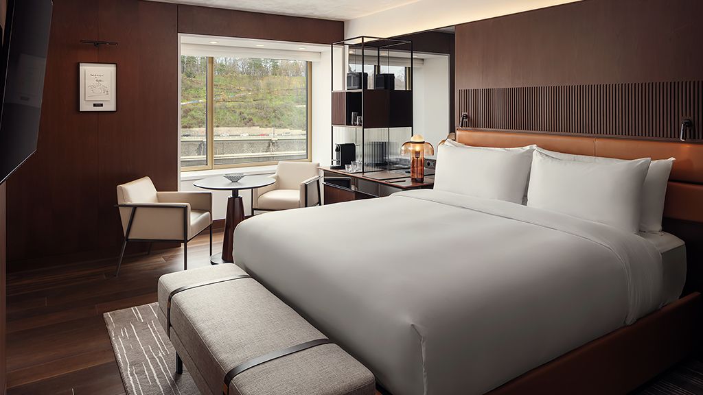 Enjoy the extra space and the stunning River views in the room featuring all modern comforts like as 55 inch TV, Nespresso machine, The Dyson Supersonic hair dryer and Le Labo bathroom amenities. Accessible rooms are available upon request. Located on floors 2-6.