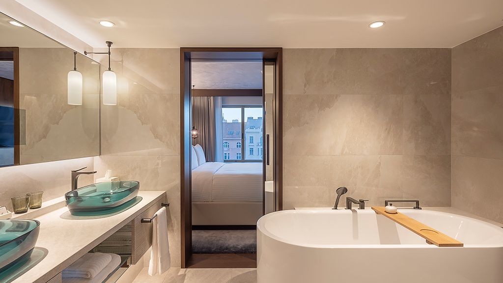 Located throughout the hotel Fairmont rooms blend Czech modernism with contemporary elegance and comfort. Rooms feature a 55 inch TV, Nespresso machine, The Dyson Supersonic hair dryer and Le Labo bathroom amenities. Located on floors 2-6.