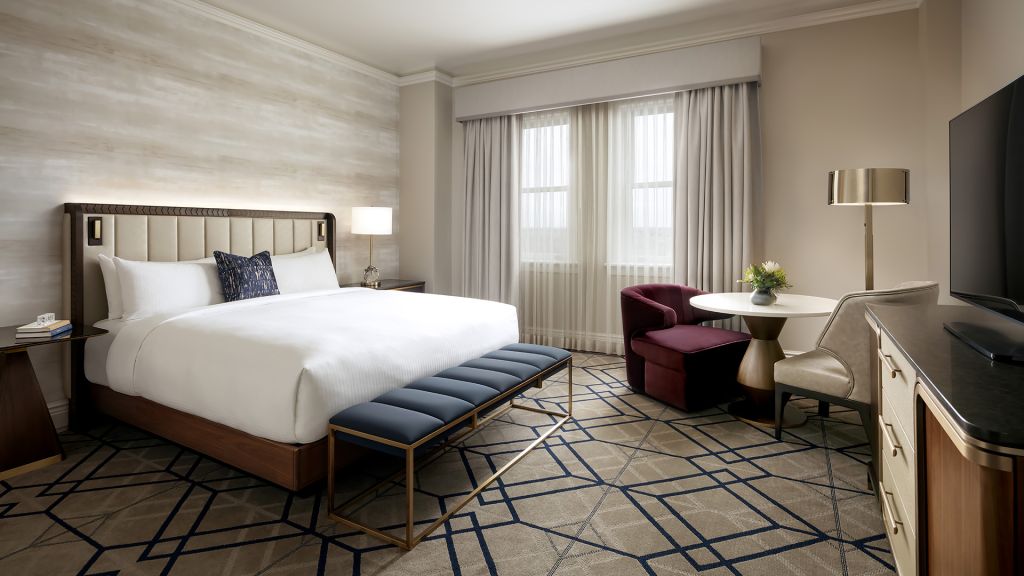 Fairmont Gold room with king bed, river valley view and lounge access.