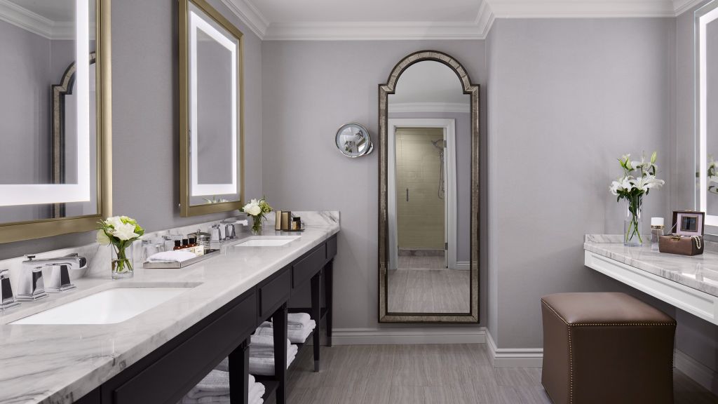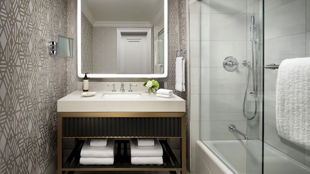 A world of comfort awaits you in your elegantly appointed Fairmont Room, featuring luxurious accents of countertop quartz, rich drapery, crystal lighting and bespoke artwork. Enjoy lavish bathrooms with illuminated mirrors, plush bathrobes and Le Labo toiletries. King and queen bed rooms feature a full glass walk-in rain shower, while double bedded rooms feature a shower with bathtub.