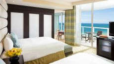These two queen bedded deluxe bay view rooms with furnished private balconies offer southeastern views of the atlantic ocean or southwestern views of biscayne bay or downtown miami. Amenities include custom bedding with egyptian cotton linens, prima loft duvet and pillows, marble baths. High definition flat-screen tv, in room private bar, and high-speed wireless internet access. Approx. 320 sq ft.