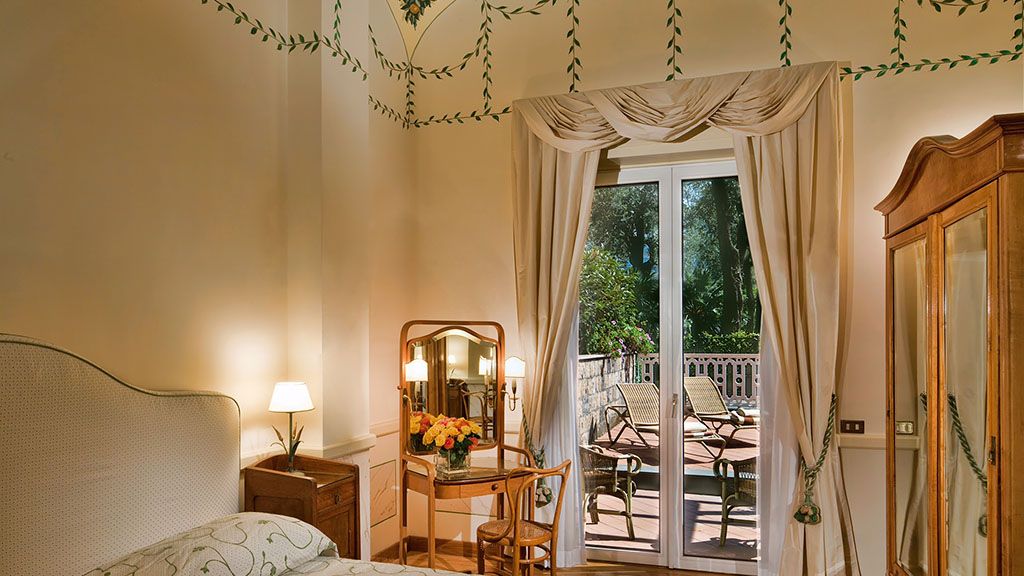 Ranging from 60 to 97 sq. M., each one-of-a-kind suite has its own history along with a tribute to past celebrities who have stayed here in the romantic backdrop of the sorrento peninsula. All individually decorated, these unique suites are softened with lavish italian fabrics and luxurious artefacts. A wonderful view over the bay of naples' deep blue water can be enjoyed from private terraces. Some have a separate sitting room. King-size or twin beds with an extra bed available on request at the time of booking. Marble bathroom - complimentary wi-fi access - in-room safe - 24-hour room service - climate control - satellite tv - complimentary in-room minibar - tea and coffee making facilities