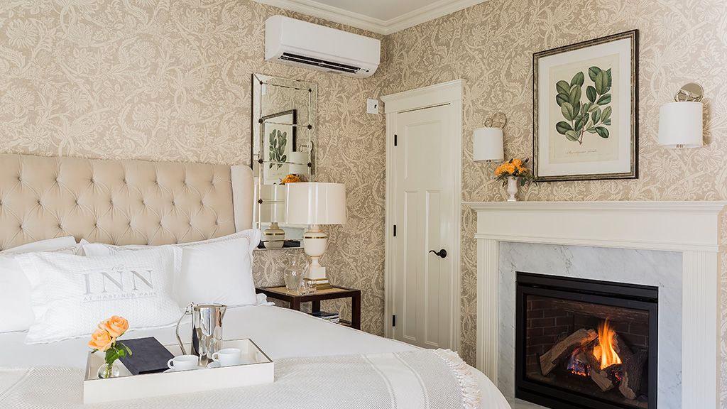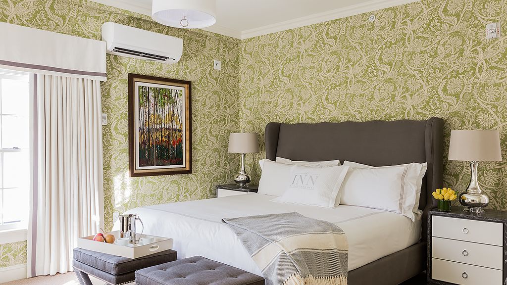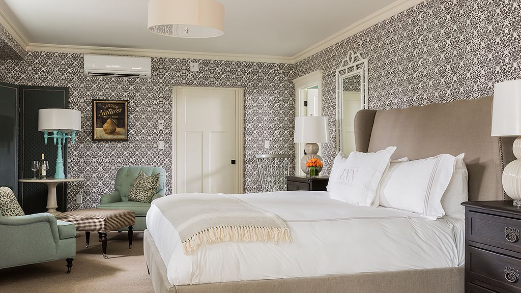 1 king bed dressed in the finest cotton linens by matouk and stunning hand-printed wallpaper – averaging 21-24sqm / 225-255sqft – located on the 2nd floor in the isaac mullikan house – this guest room has a sitting area with beautifully tailored artisanal upholstery and an elegant marble fireplace – the marble bathroom has a spa-inspired rain shower – molton brown bath amenities – hairdryer – bathrobes – slippers – 42-inch lg flatscreen tv with cable channels – iphone docking station in room – iron and ironing board – air conditioning and windows that open – turndown and daily housekeeping services – complimentary refreshment center with nespresso coffee, snacks and drinks – no extra bed possible – maximum occupancy 2 persons