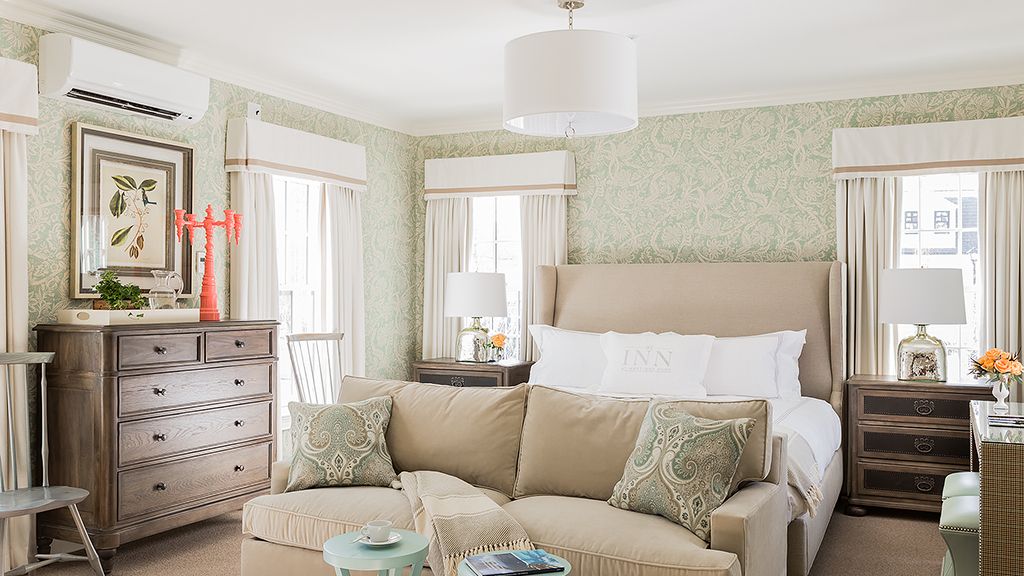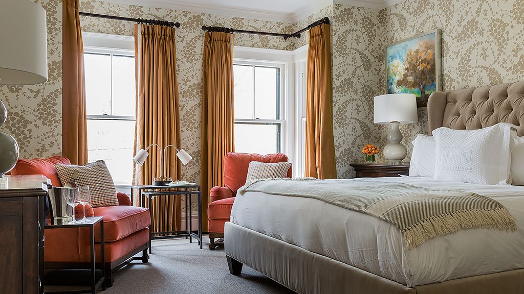 A king bed dressed in the finest cotton linens by matouk and stunning hand-printed wallpaper – averaging 33-35sqm/ 356-542sqft – nestled in the isaac mulliken house, this spacious guest room is a short walk from the main house – this guest room has a sitting area with beautifully tailored artisanal upholstery and an elegant marble fireplace – the marble bathroom has a spa-inspired rain shower – molton brown bath amenities – hairdryer – bathrobes – slippers – 42 inch lg flatscreen tv with cable channels – iphone docking station in room – iron and ironing board – air conditioning and windows that open – turndown and daily housekeeping services – complimentary refreshment center with nespresso coffee, snacks and drinks – sofa bed available in some rooms – no additional charges apply – maximum occupancy 4 persons