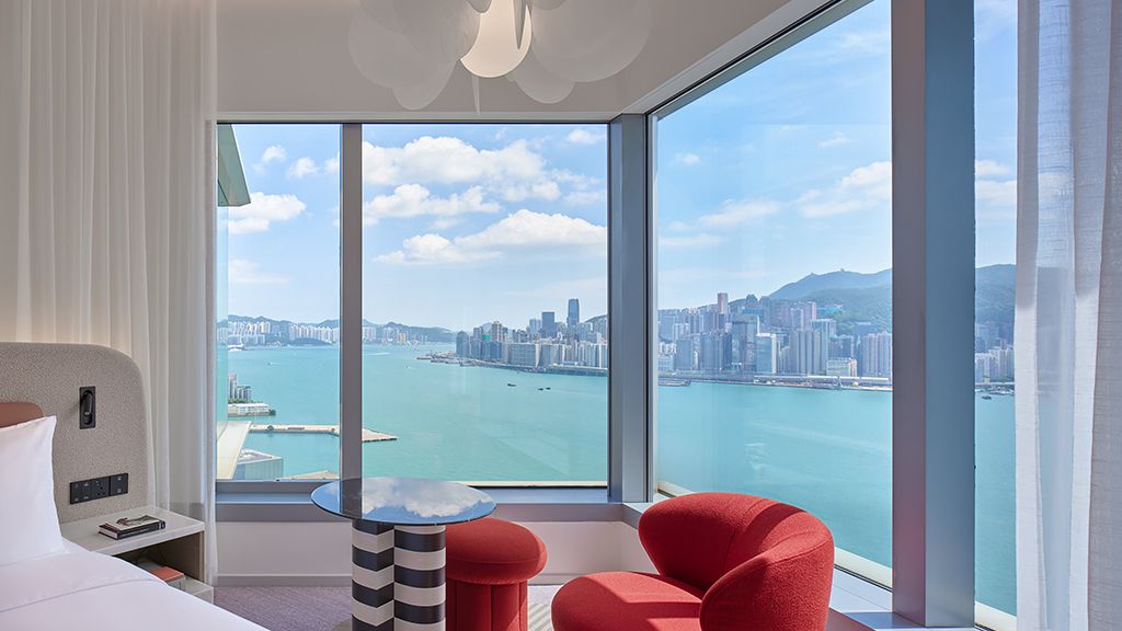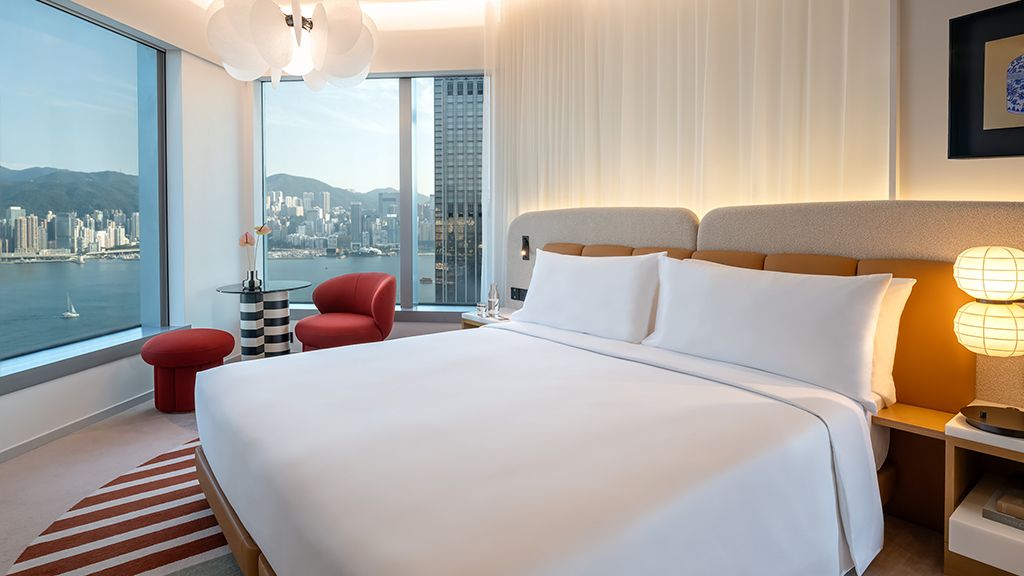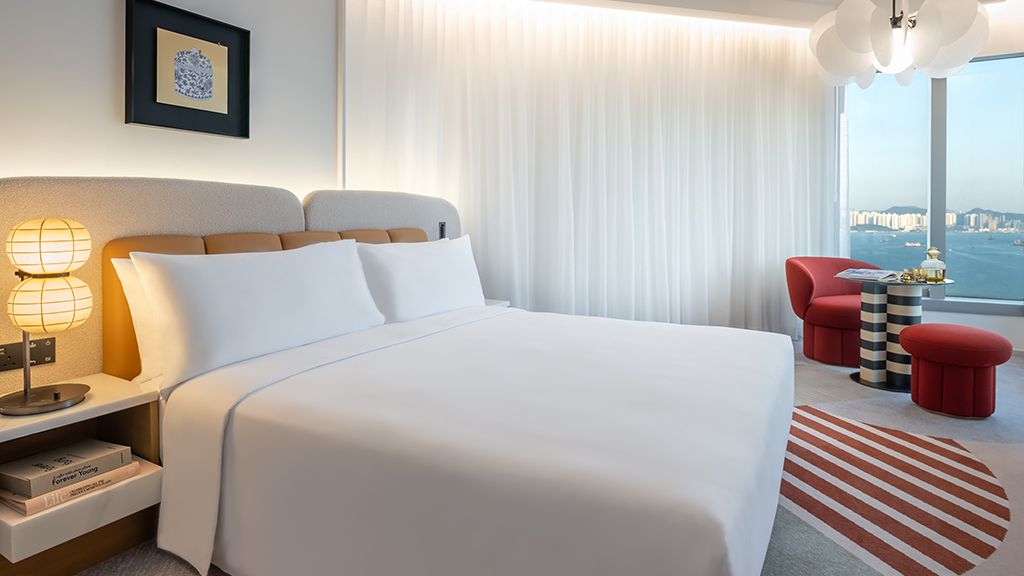 With larger room size, high ceilings, bright decor, and oversized windows, Harbour Deluxe Rooms feature stunning views of the expansive Victoria Harbour. King bed.