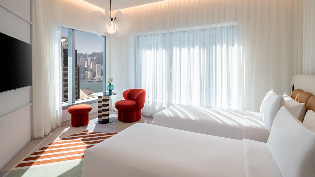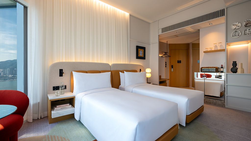 Boasting city views of vibrant Hong Kong and its iconic night scenes, Skyline Deluxe rooms feature high ceilings, soothing colours, and spacious interiors. Twin beds.