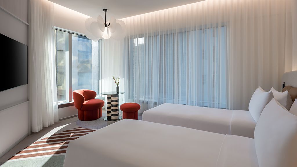 With spacious interiors and expansive windows offering panoramic views of the vibrant cityscape both day and night, Skyline Premier rooms feature luxurious beds and contemporary furnishings. Twin Beds.