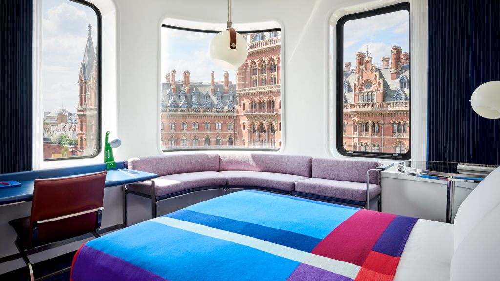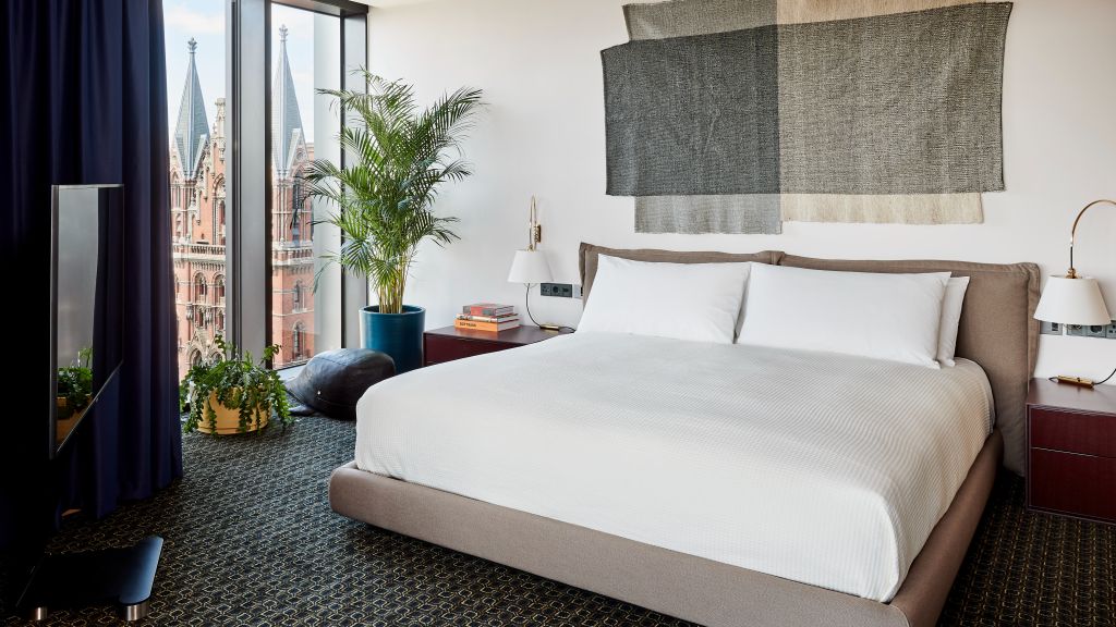 This one’s a king among kings at 33–37 square metres (355–398 square feet). Your king bed is paired with expansive bay windows offering a choice of iconic st pancras views or sweeping city panoramas. A perfect spot to relax and take in the skyline. Every detail is designed for your comfort and indulgence with a beautifully appointed bathtub, 24-hour room service, bespoke bathrobes, a bang & olufsen bluetooth speaker and a minibar filled with tasty treats