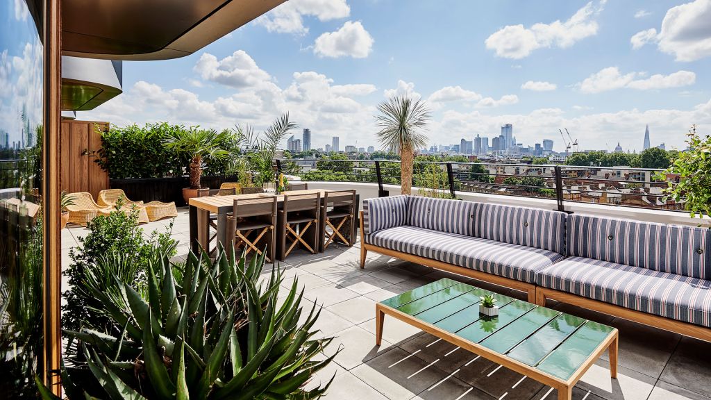 Find California cool in the heart of Kings Cross. At 130 – 132 square meters (1,399 – 1,421 square feet), that’s 68 square meters (732 square feet) of indoor space with a 62-64 square meters (667-689 square feet) terrace, with multiple areas to lounge. The Deluxe Studio Suite features abundant natural daylight and triple-glazed windows for a quiet night’s sleep. Make yourself at home with 24-hour room service, fluffy down pillows, fancy sheets, bespoke bathrobes, a Bang & Olufsen Bluetooth speaker and a minibar, overstocked with tasty treats. As a suite guest, you can also get a Peloton bike delivered directly to your room on request, a Stutterheim raincoat for use across your stay, complimentary sneaker cleaning service, turndown service and yummy minibar additions.