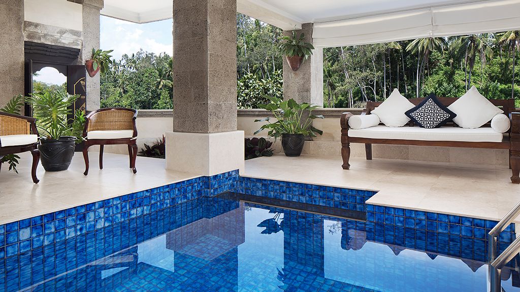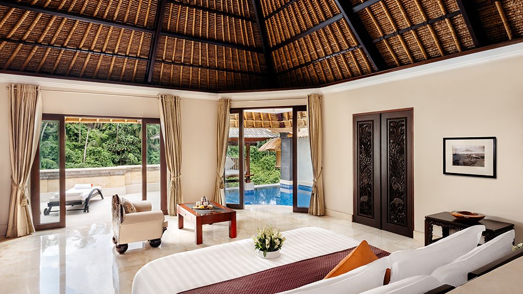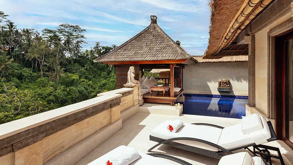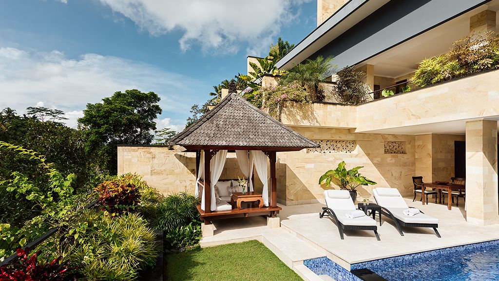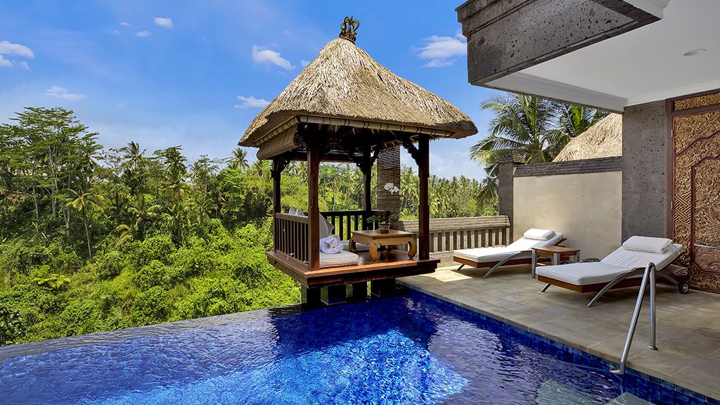 Terrace pool villa's have a traditional balé perched elegantly over the private outdoor heated pool. These bungalows are the ideal place to look out to the spectacular jungle valley views; relaxing and reading or for an afternoon siesta. The villa boasts an alang-alang grass thatched roof and open plan marble bathroom. The bedroom is integrated with a generous living space and fitted with luxury amenities.