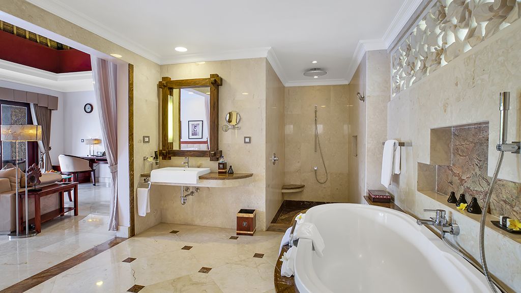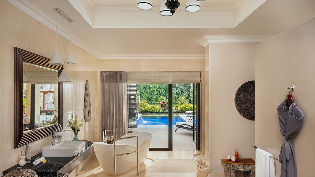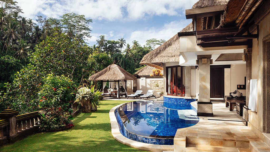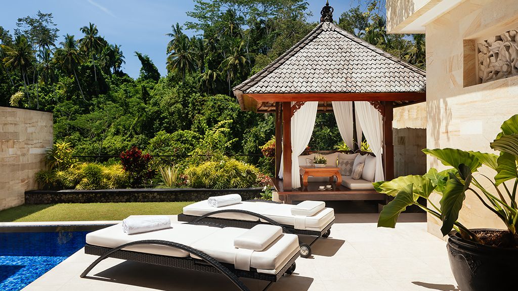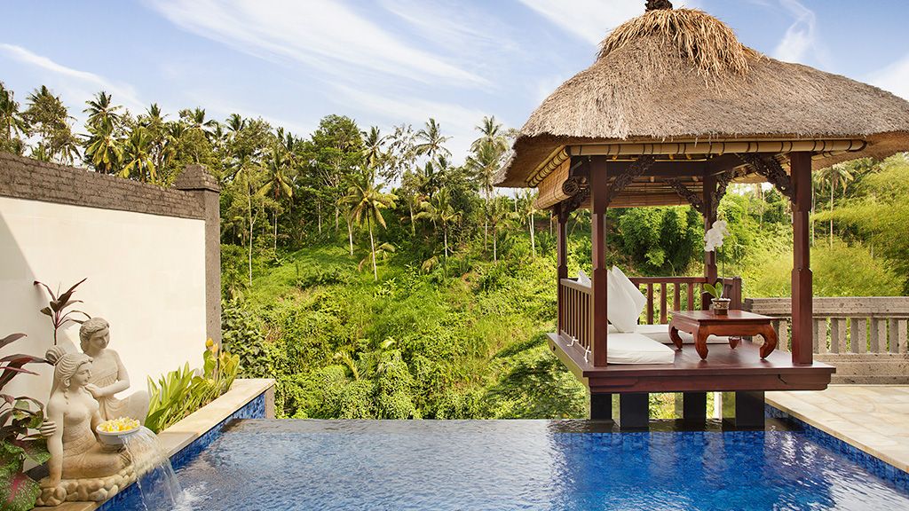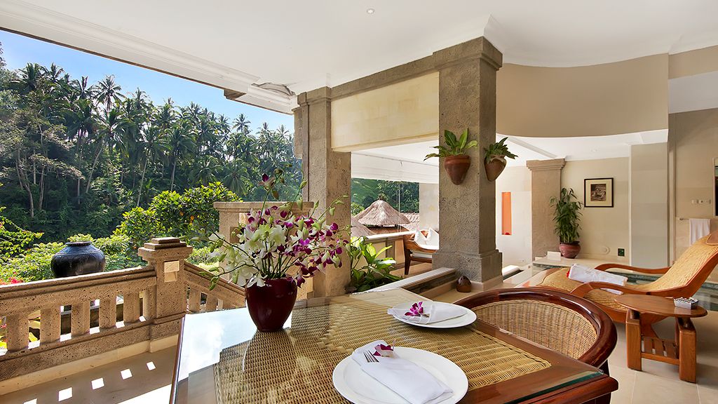 Terrace pool villa's have a traditional balé perched elegantly over the private outdoor heated pool. These bungalows are the ideal place to look out to the spectacular jungle valley views; relaxing and reading or for an afternoon siesta. The villa boasts an alang-alang grass thatched roof and open plan marble bathroom. The bedroom is integrated with a generous living space and fitted with luxury amenities.