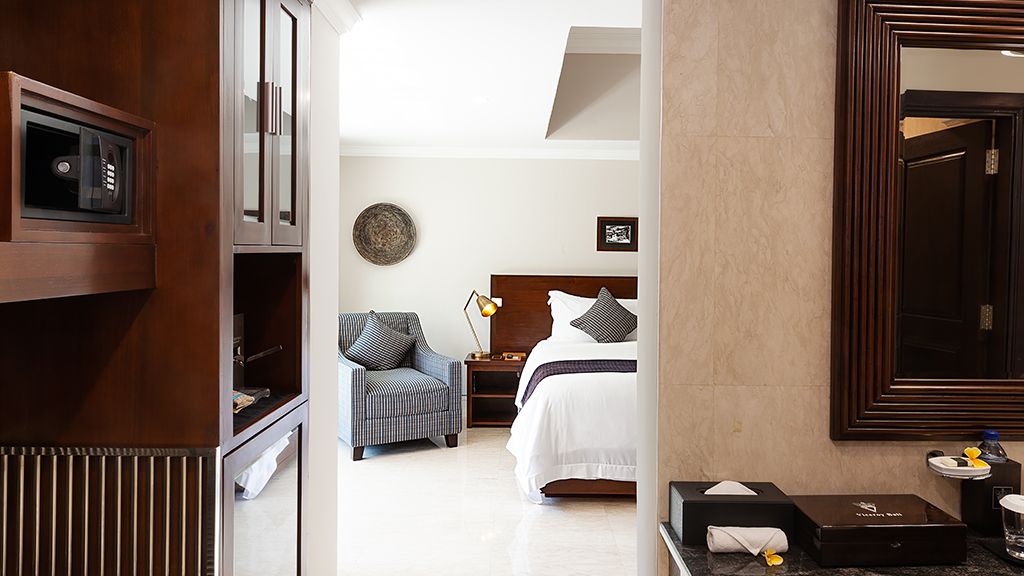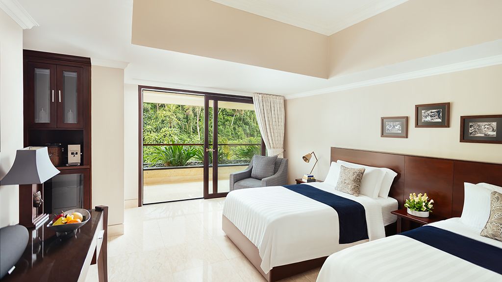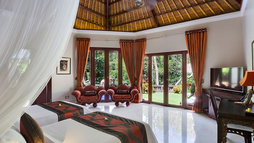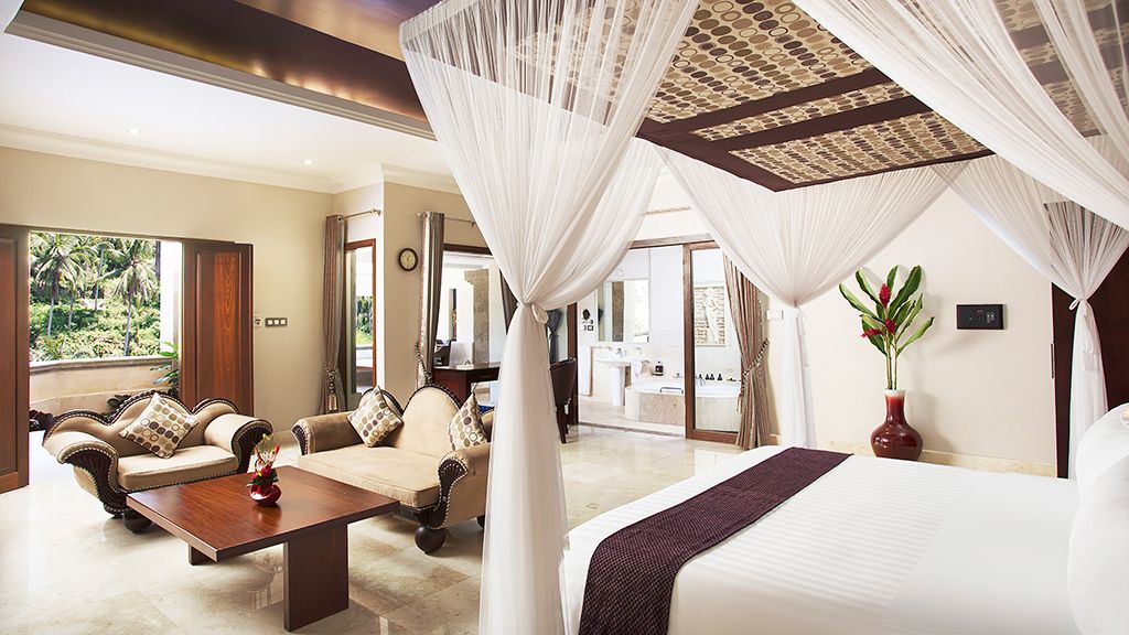 The deluxe terrace villa took their design from their original terrace villa counterparts, however with larger infinity pool and a newer design that integrates balinese architecture seamlessly. Located on three different levels of the resort, this romantic villa can be up close to the petanu river and immersed in greenery, or near the main pool and restaurant facilities with expansive valley views. The bedroom has a generous living space and large marble bathroom fitted with luxury amenities such as a 30cm rain shower and twin vanities. Espresso coffee machine and 24 hour room service mean you can enjoy lounging in the indoor and outdoor living spaces without feeling the need to leave your villa sanctuary. The deluxe terrace villa is also an option for families by adjoining two villas via the pool terrace
