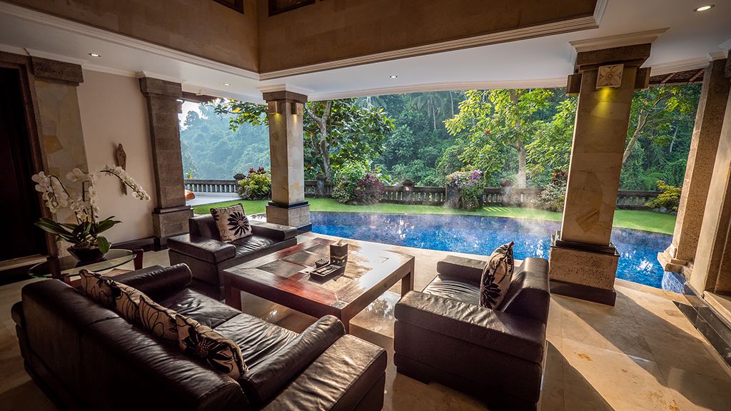 The vice regal villas are fit for royalty, boasting an expansive master bedroom plus living area that steps out to a deck with stunning jungle views. This is an ideal family villa with a second bedroom and bathroom and balcony upstairs via an outdoor staircase. The large outdoor heated pool is partially shaded and overlooks the lush vistas, providing the perfect spot to perch all day and in all weather. These villas rest right on the edge of the valley, overlooking the petanu river gorge and you can relax in the garden whilst listening to the river below. This room accommodates up to five guests. Please note that an additional charge will apply for the fifth guest as follows: children aged 2-4 years: US Dollars 30 per person, per night, including breakfast and sharing a bed with parents. Children aged 5-11 years: US Dollars 110 per person, per night, including an extra bed and breakfast. Adults: US Dollars 110 per person, per night, including an extra bed and breakfast. Please be aware that the system does not automatically calculate these extra charges for children. The additional fees must be settled upon check-in