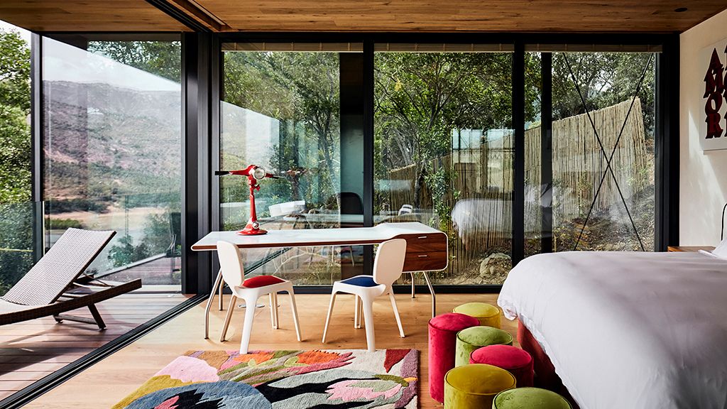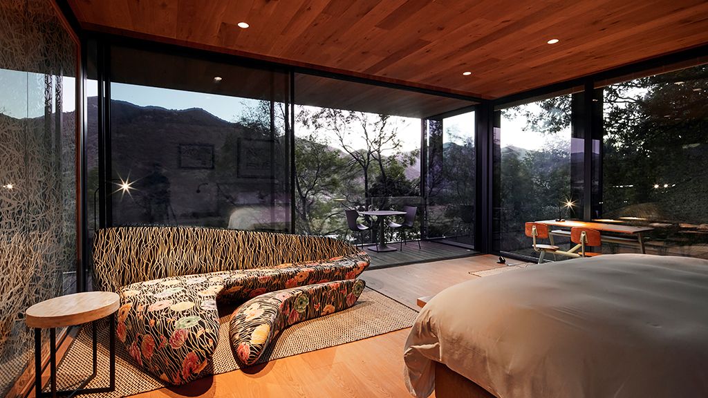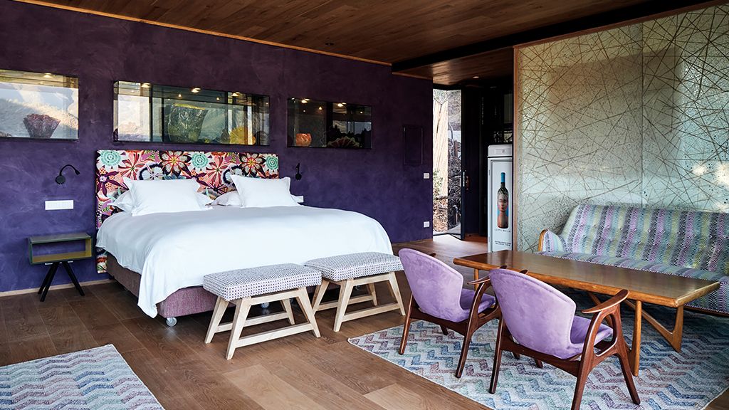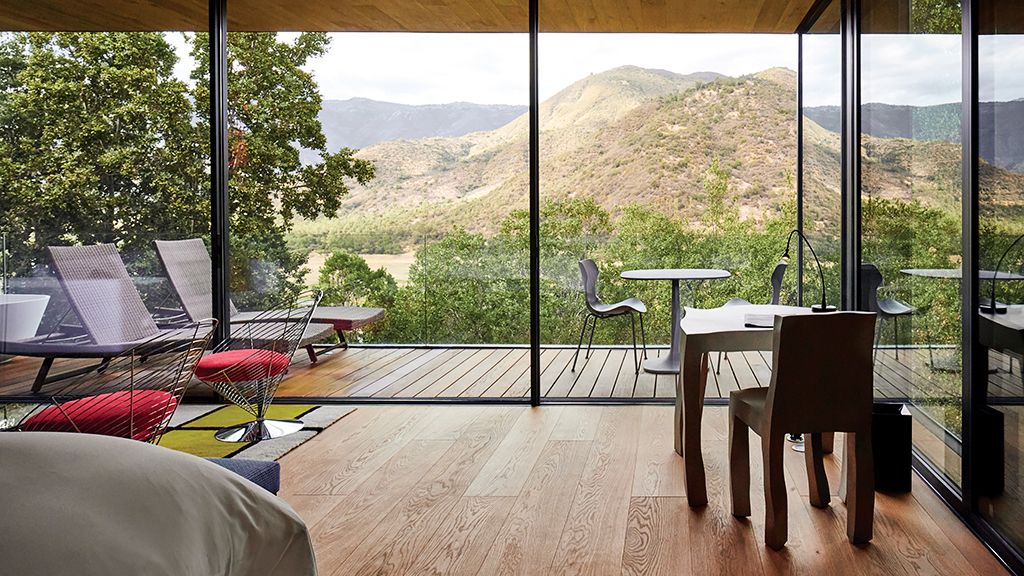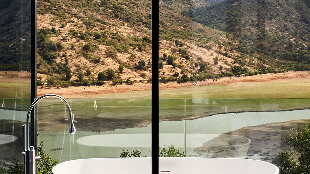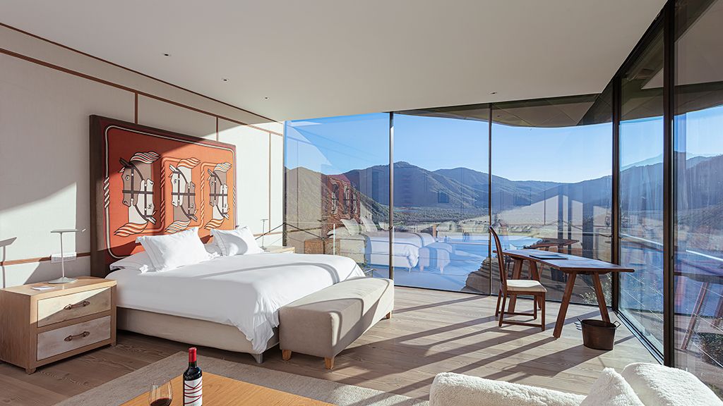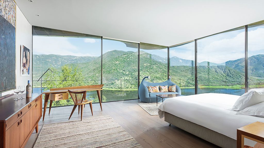 The most luxurious category, they are glass houses that are located between 20 and 100 meters from the main building so they have more privacy. Suite with king-size bed or 2 twins. 72 sq. meters. Layout for 2 or 3 people. It accommodates one extra bed. The third guest must pay for the extra bed. Terrace with bathtub. Living space and desk. Coffee maker. Overlooking the valleys, vineyards, mountains and lake. Special amenities made with grape seeds. Egyptian cotton linens. Free wifi access. Free of charge in room minibar.