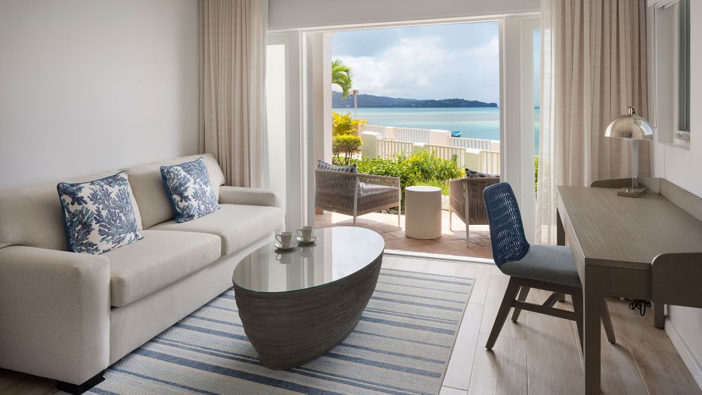 Coastline 1 bedroom suite 1 king bed 900 up to 1000 sq. Ft. Ocean view these incredible coastline suites offer captivating oceanfront views along with convenient access to the property’s world-class amenities. These well-appointed suites include an oceanfront terrace. Ideal for couples or a small family (2 adults & 2 children 11 and under).